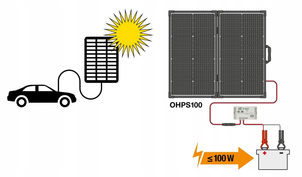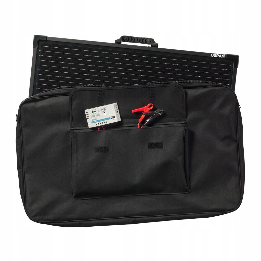 OSRAM BATTERYcharge SOLAR 100 Вт — це ефективна портативна сонячна панель, розроблена для заряджання та обслуговування акумуляторів 12 В, які використовуються в туризмі.
