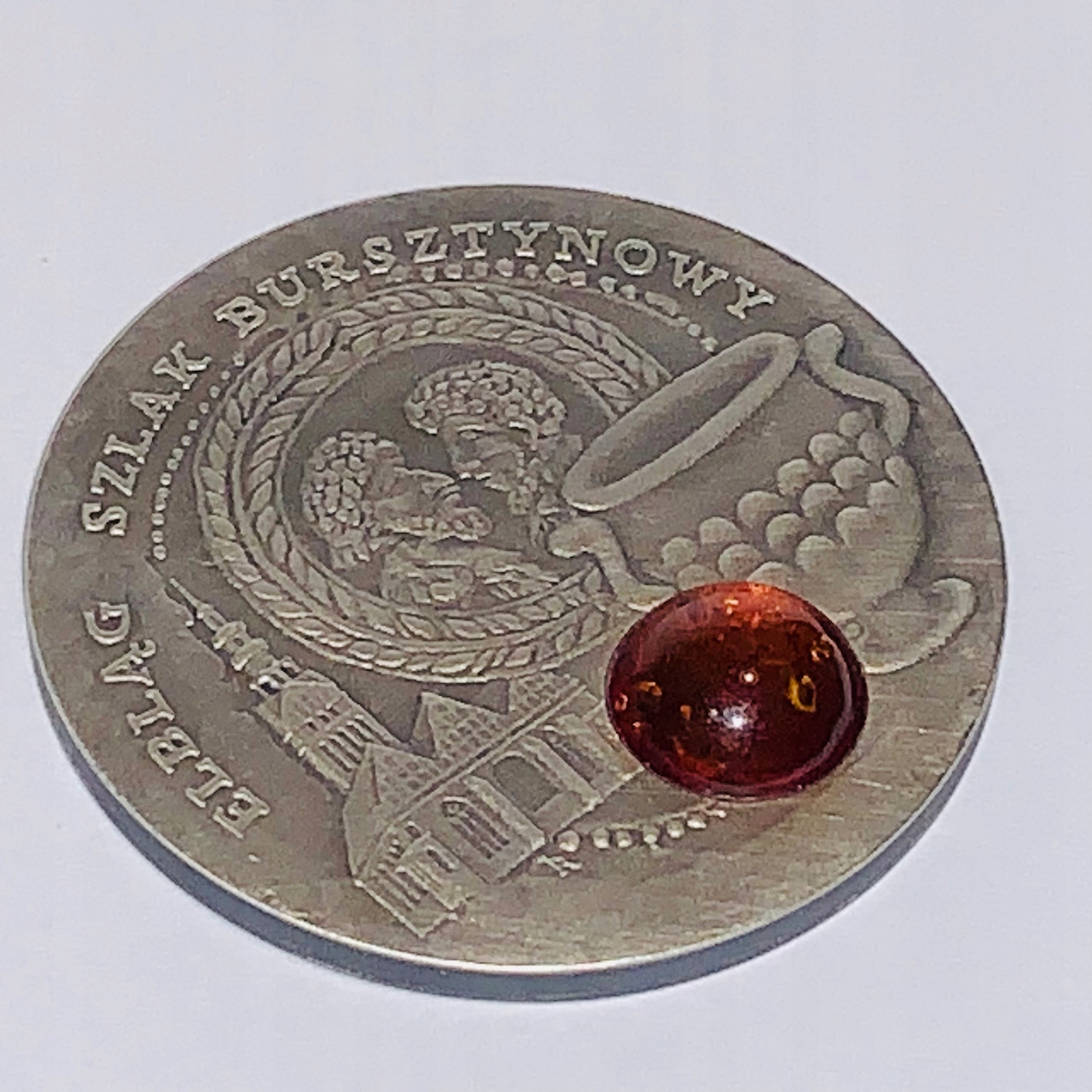 - Срібло 925 Оксидований з бурштиновим набором / 28,28 г / Діаметр: 38,61 мм