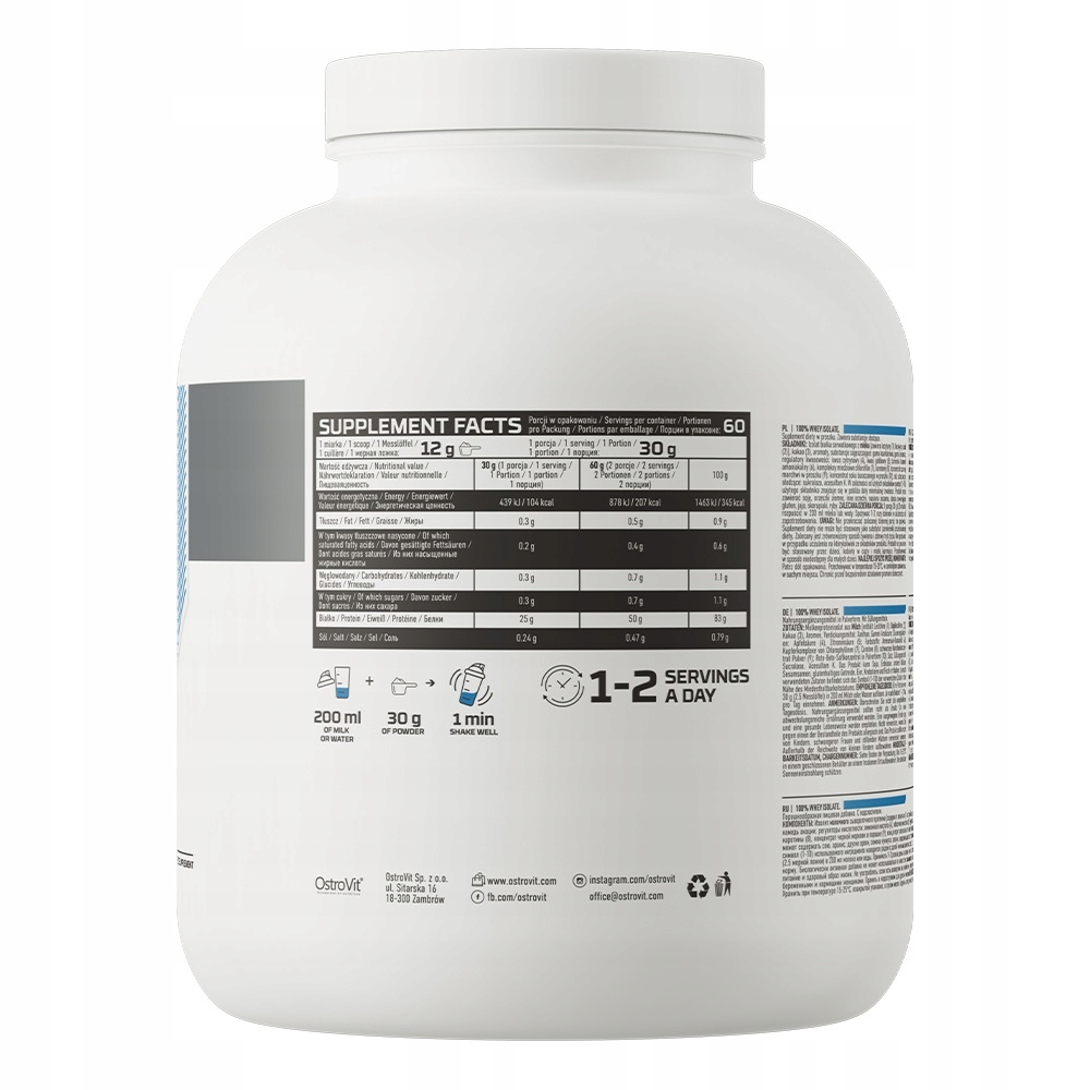 OstroVit 100% Whey Isolate – це білкова добавка, яка містить ізолят сироваткового білка. Це джерело білка, який сприяє зростанню м'язової маси і допомагає підтримувати м'язову масу. Крім того, білок допомагає підтримувати здоров’я кісток, що робить його цінним макронутрієнтом у щоденному раціоні.