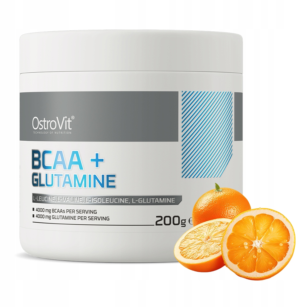 ⭐️ OstroVit BCAA + Glutamine ⭐️це високоякісна дієтична добавка, яка є джерелом L-глутаміну та амінокислот з розгалуженим ланцюгом - L-лейцин, L-ізолейцин і L-валін. Це препарат з освіжаючим смаком апельсина, доступний у зручній формі порошку. Це продукт, створений для спортсменів і фізично активних людей, які хочуть доповнити свій щоденний раціон цінними амінокислотами.