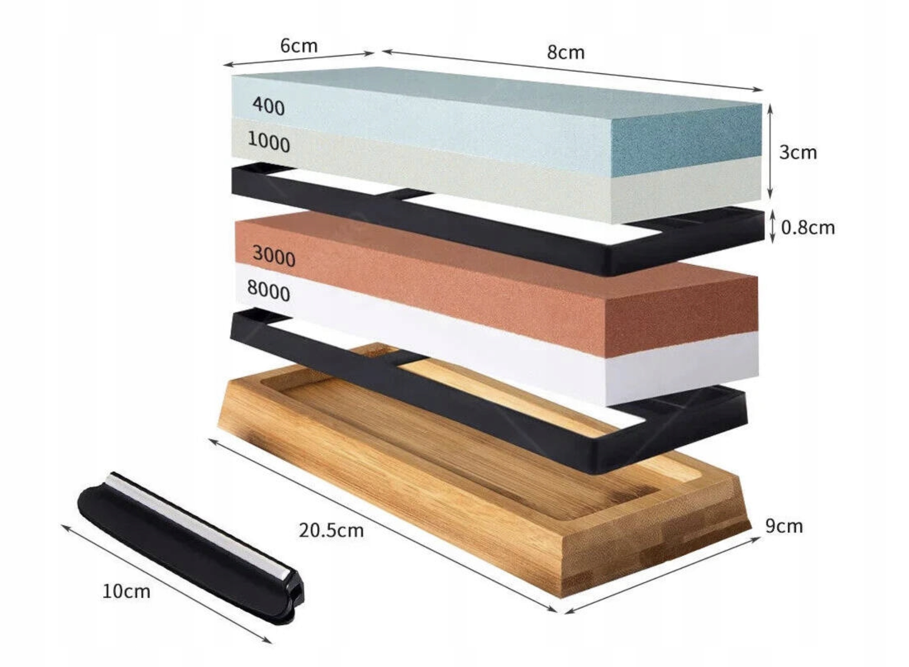 4 камені з різною зернистістю і дерев’яною основою