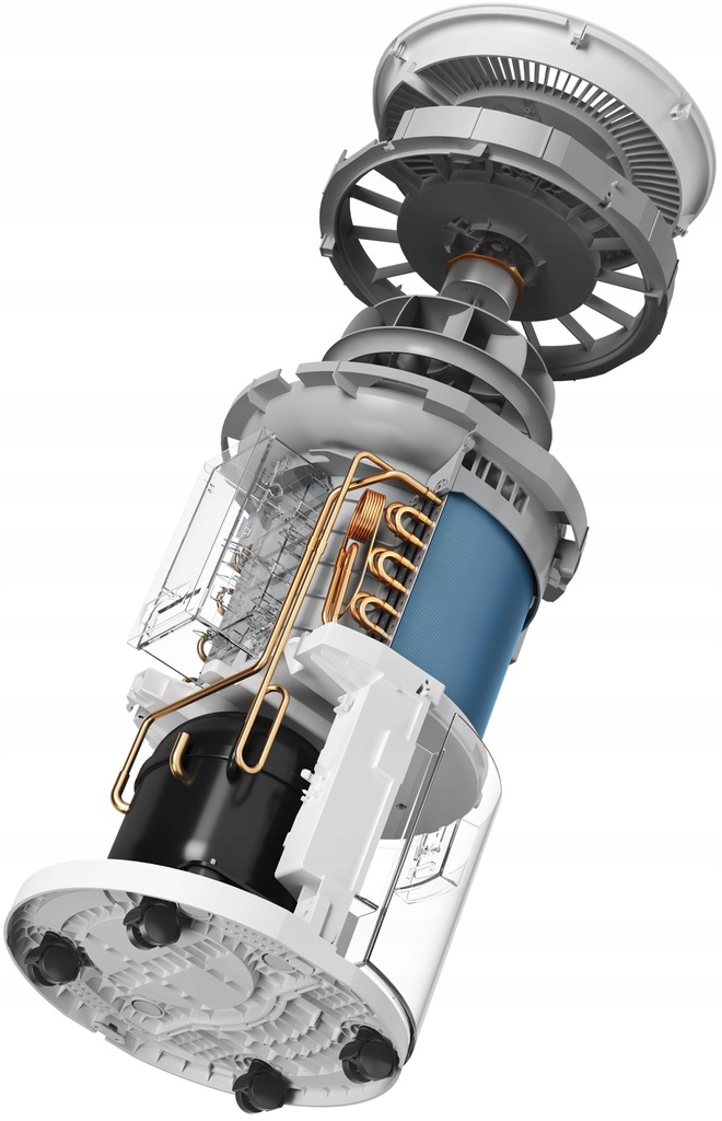 Повітряний отвір, встановлений у верхній частині, забезпечує рівномірний розподіл сухого повітря по всій поверхні. Вигнутий випарник і конденсатор гарантують високу ефективність навіть у компактному вигляді пристрою.