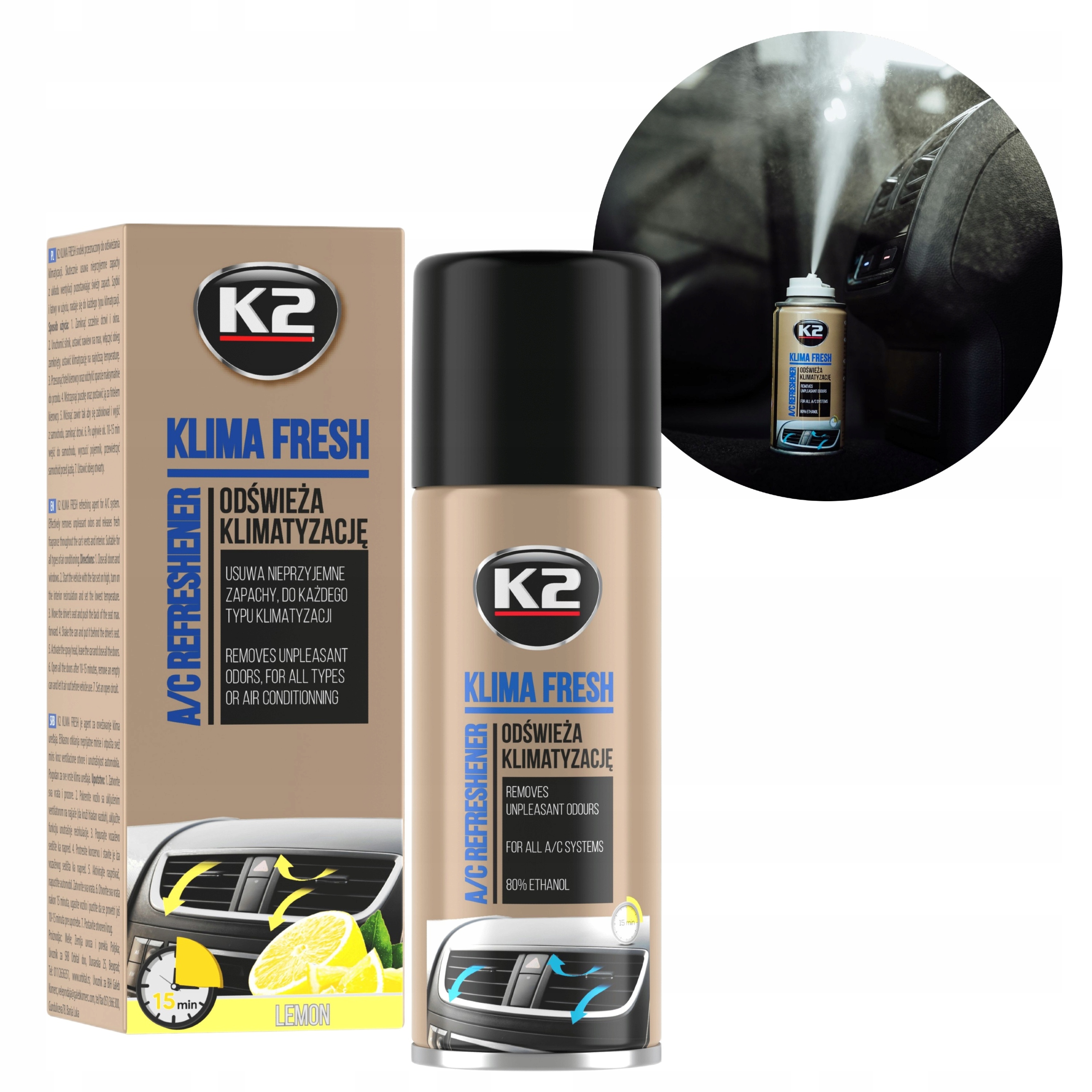 Освіжувач кондиціонера K2 KLIMA FRESH - надзвичайно ефективний і простий у використанні засіб для освіження кондиціонера. Усуває неприємні запахи, викликані брудом і вологою в системі вентиляції. Весь процес займає не більше десятка-іншого хвилин. Підходить для всіх типів кондиціонерів. Після використання залишає свіжий аромат.