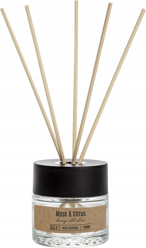 Ароматичний дифузор ємністю 50 мл з ротанговими паличками з мускусно-цитрусовим ароматом. Аромат зберігається до 7 тижнів, що дозволяє насолоджуватися неповторним, ароматним ароматом протягом тривалого часу.