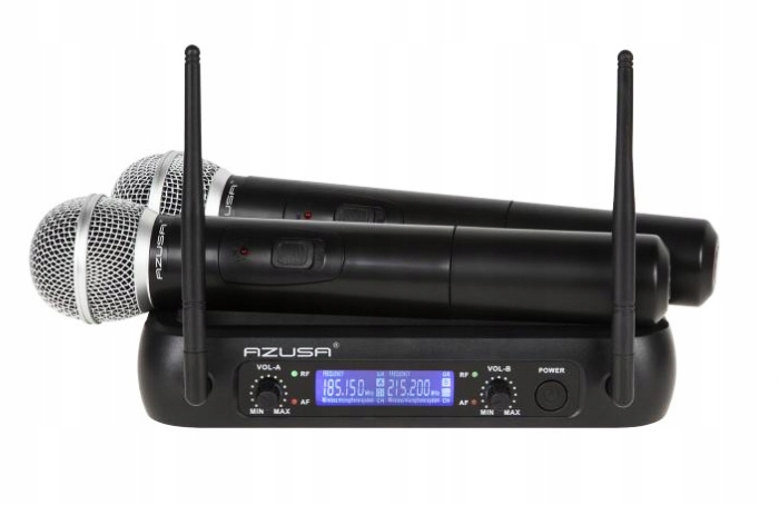 БЕЗДРОТОВІ МІКРОФОНИ WA З ПРИЙМОЧНОЮ СТАНЦІЄЮ ТА ПУЛЬТОМ ДИСТАНЦІЙНОГО КЕРУВАННЯ В КОМПЛЕКТІ.