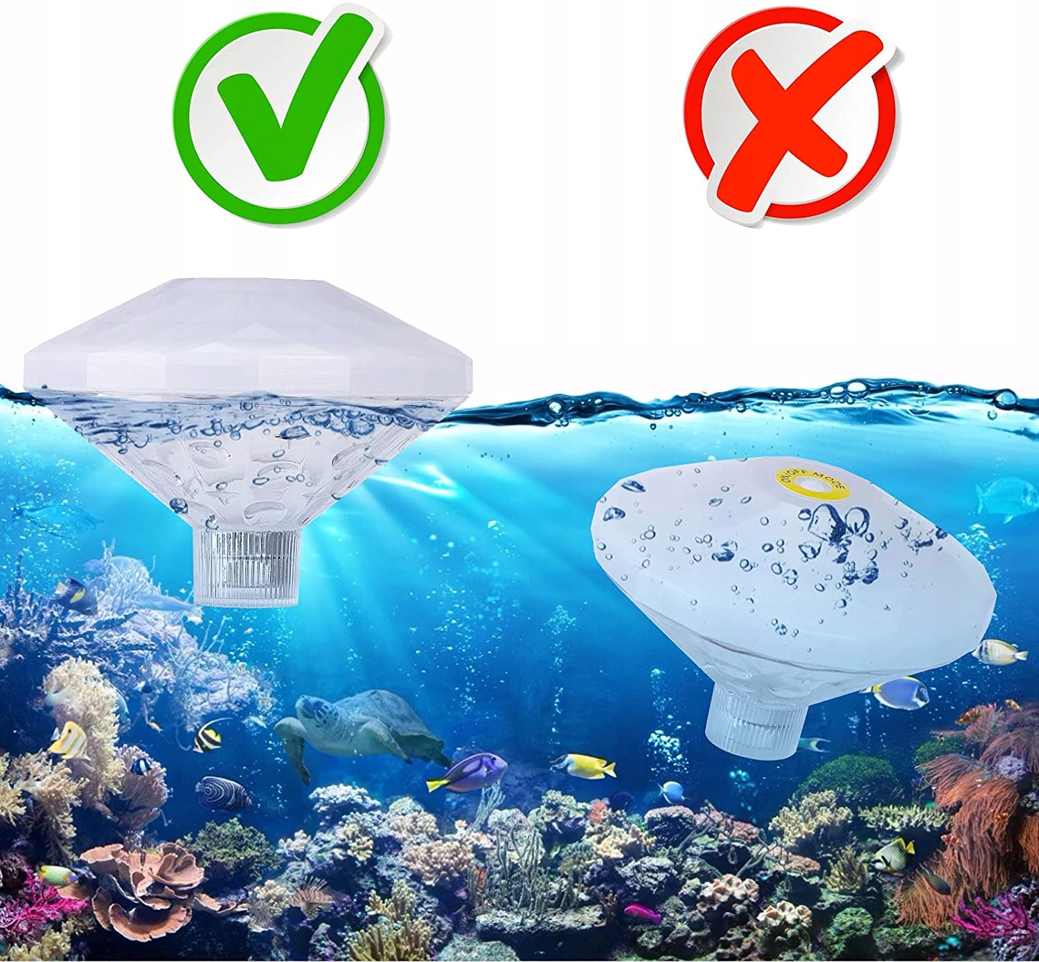 - Помістіть його у воду, і весь басейн буде освітлено різнокольоровими вогнями. Створюйте романтичні, круті та різноманітні вечірки з чудовими підводними диско-вечірками.