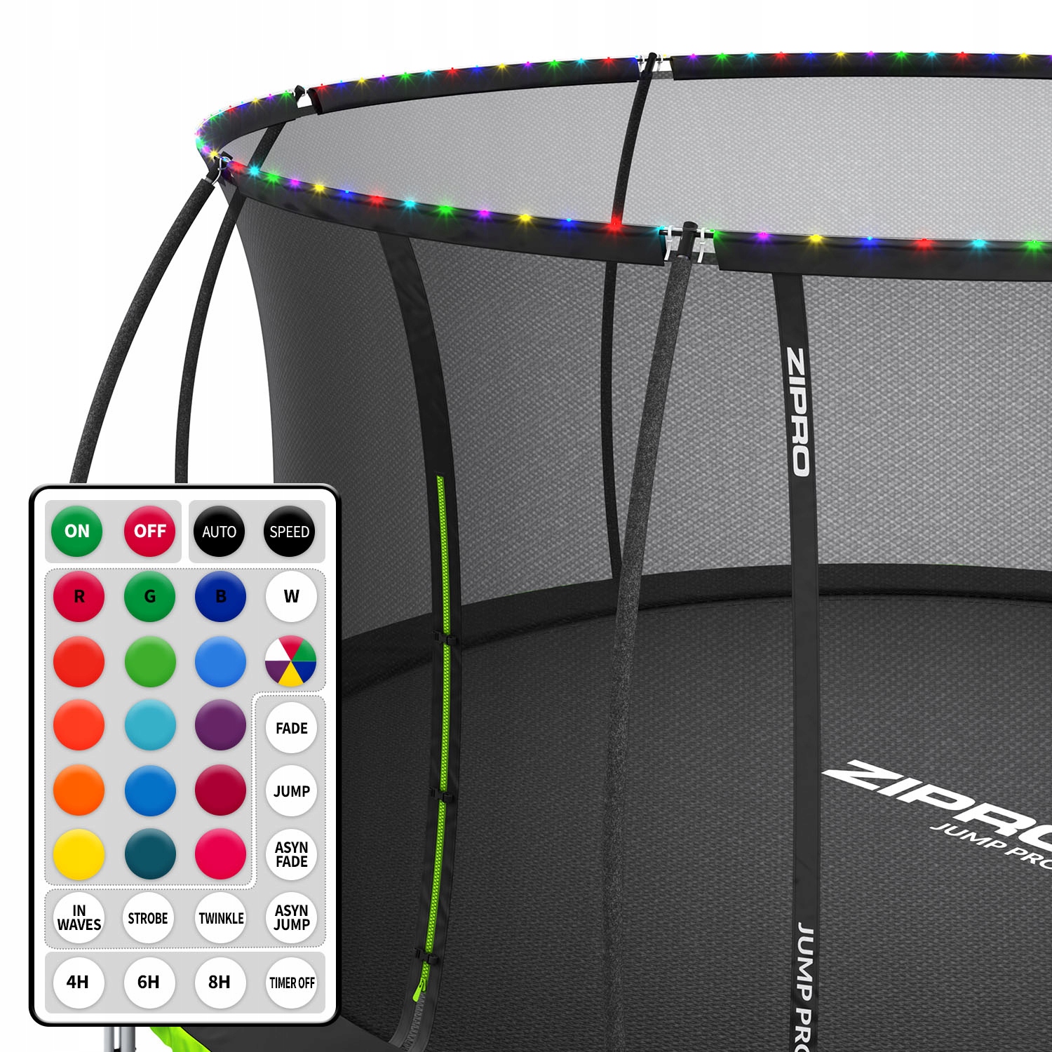 Освітлення кріпляться до батута ZIPRO за допомогою кабельних стяжок. Це просте та довговічне рішення, яке витримає випробування часом і не створить проблем під час встановлення.