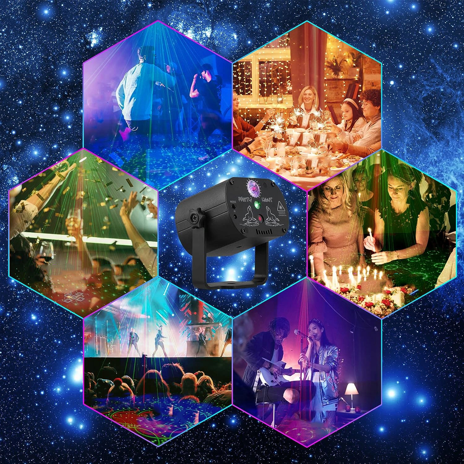 Ді-джейський диско-ліхтар ідеально підходить для дискотеки, вечірки з нагоди дня народження, бару, телевізійного телевізора, клубного танцювального залу, концерту, бального залу, Різдва, Хелловіну, домашньої вечірки, вечірки біля басейну.