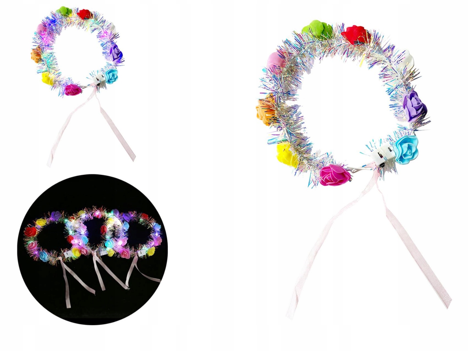 Віночок оснащений світлодіодами, які випромінюють різнокольорове світло, створюючи дивовижний ефект у темряві. Завдяки гнучкому дизайну вінок легко підлаштовується під розмір голови, що забезпечує комфорт при носінні. Це ідеальний аксесуар для тих, хто хоче виділитися з натовпу та додати трохи фантазії у свій образ.
