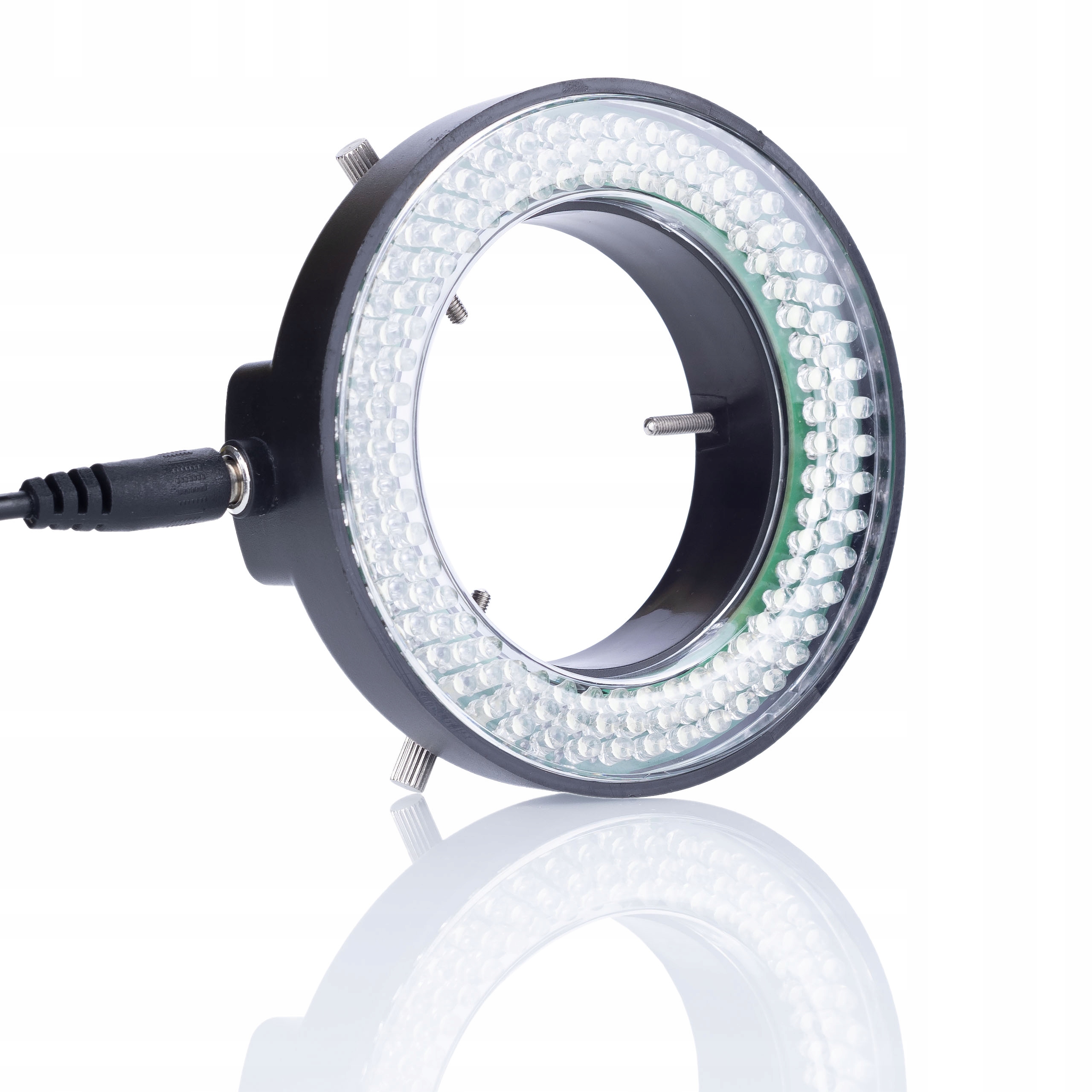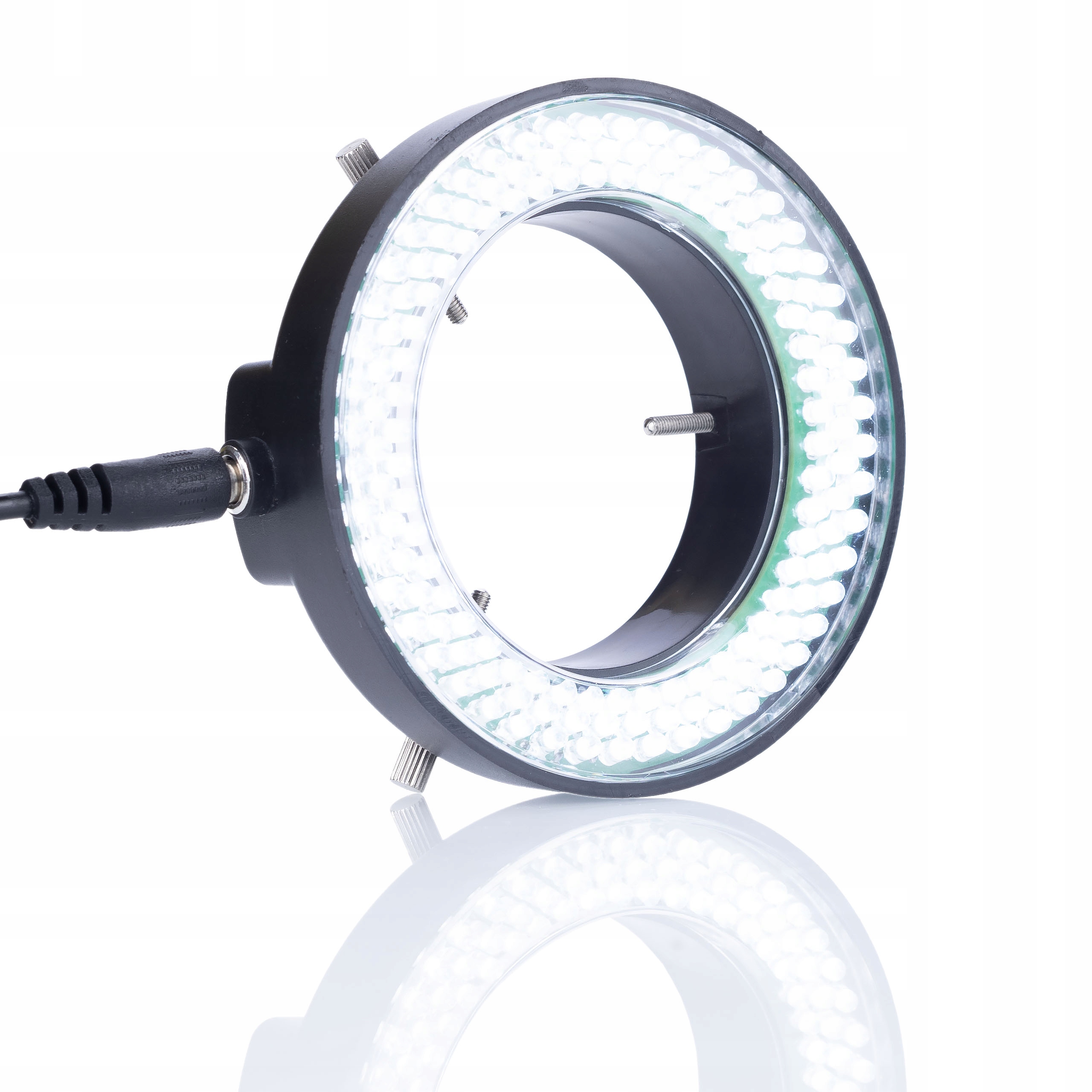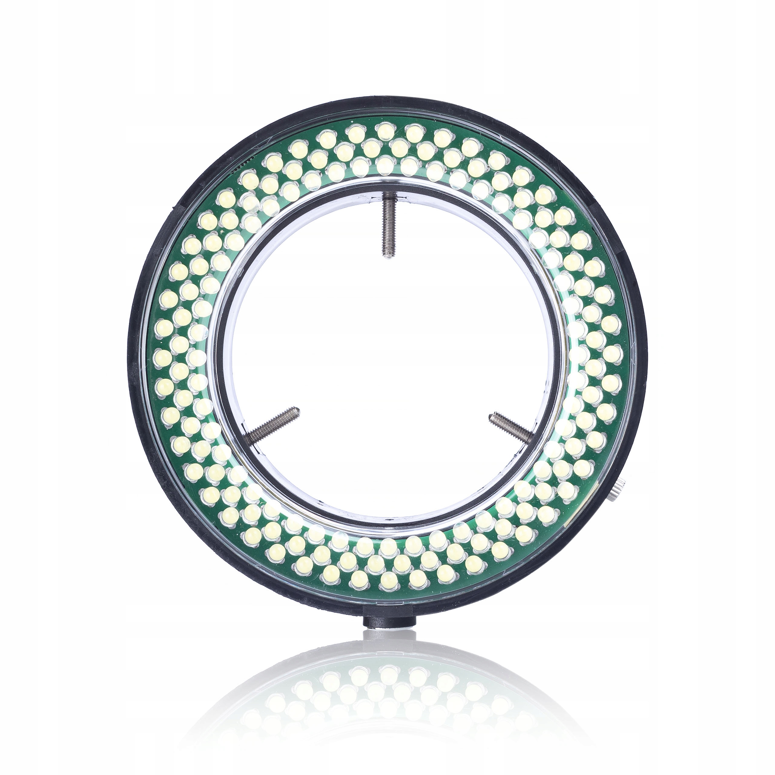 - Регульований діаметр кільця:Діаметр кільця 60 мм зсередини та 95 мм зовні регулюється тиском гвинтів. Це дозволяє регулювати освітлення для різних розмірів мікроскопів.