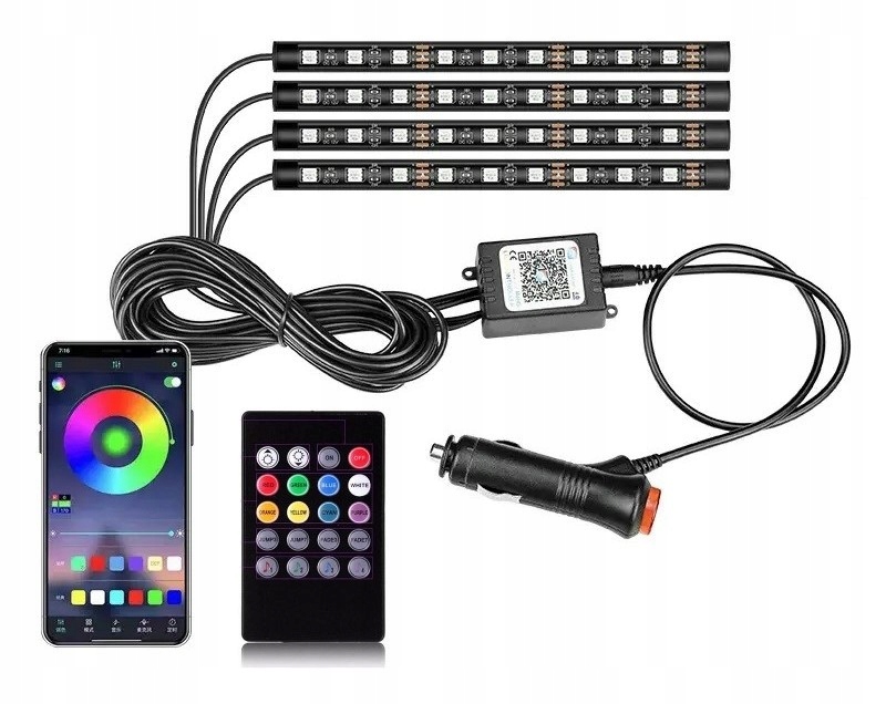 ОСВІТЛЕННЯ САЛОНУ АВТОМОБІЛЯ RGB LED STRIP 4x9 ДОДАТОК BLUETOOTH