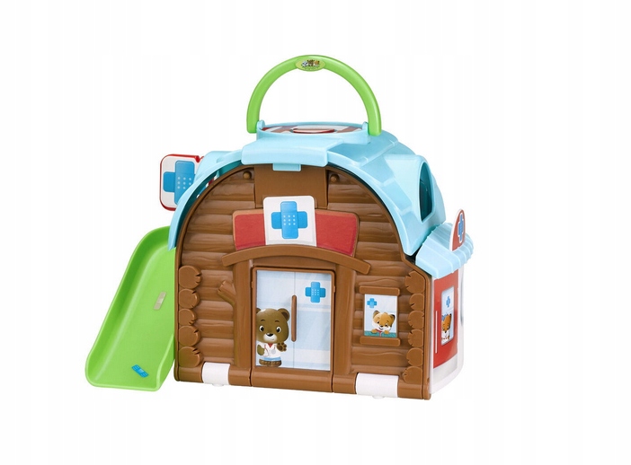 ↗ Лісова лікарня приймає та лікує всіх тварин, які цього потребують! Болить живіт, подряпина, зламана нога на лижах, Доктор Інклюз допоможе кожному! "ПОП-МУЗИКА! Натисніть кнопку на даху лікарні, і лікарня відкриється навстіж.
