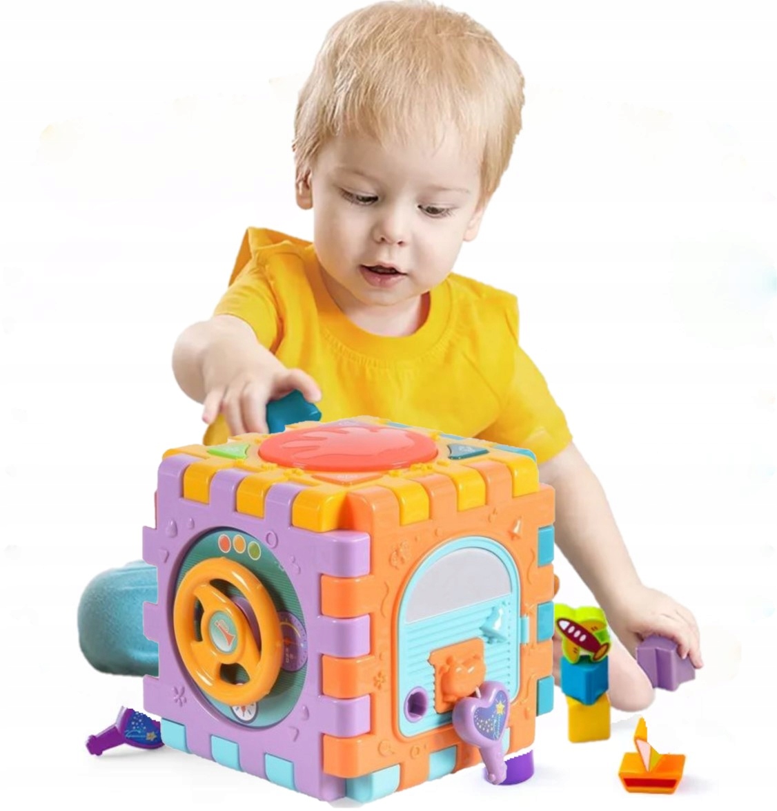 - Велика кількість функцій - Цей інтерактивний блок буде чудовою навчальною іграшкою для кожного малюка. Куб має 6 стін для активної забави - , і кожен з них відрізняється. Іграшка, безумовно, здивує малюка та опікуна пропозицій цікавих та щасливих розваг.