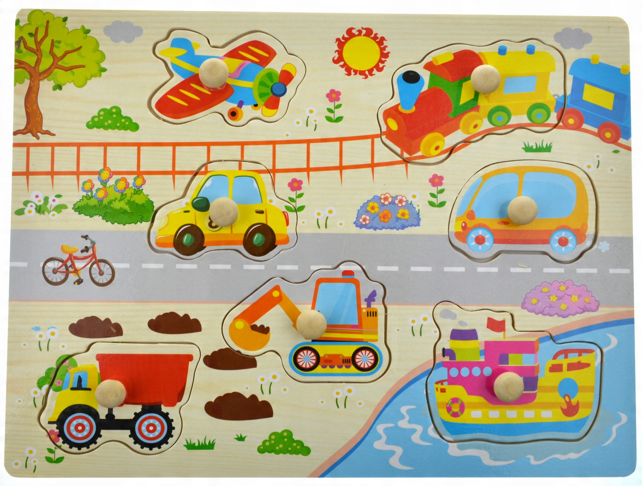 Кожен блок елементів має ручку у формі шпильки, що полегшує малюкові розставляти окремі елементи