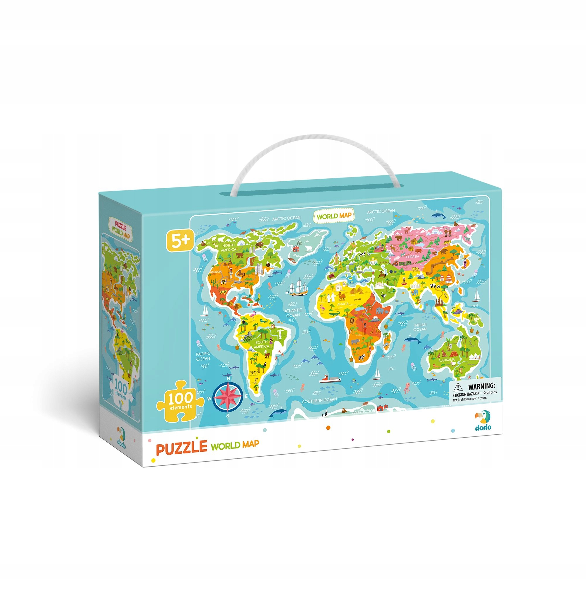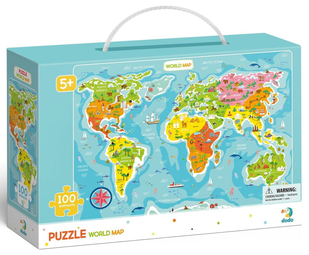 Головоломка Додо. Карта світу - це загадка 100 елементів, яка після розташування показує карту світу. На малюнку також показані рослинність, тварини, пам’ятки, характерні для даного регіону.