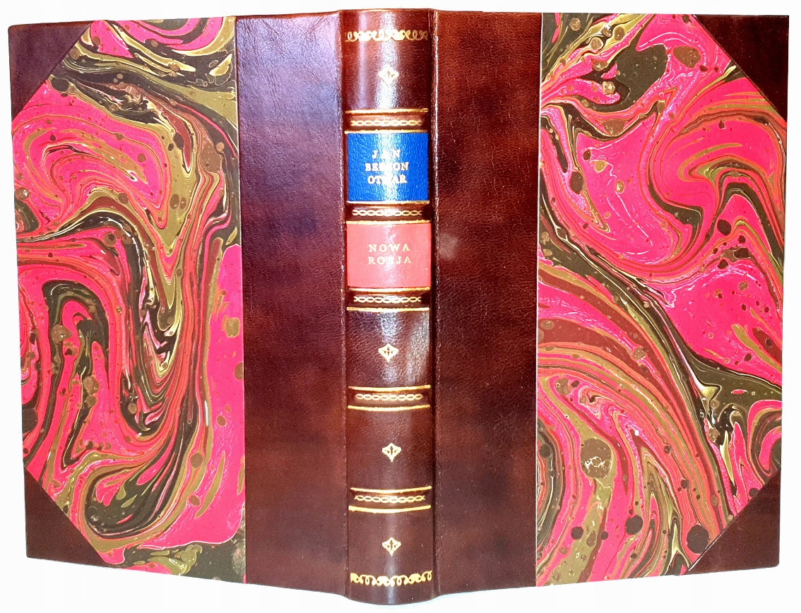 НАПІВШКІРЯНА ТВЕРДА ОБКЛЮЧКА В СТИЛІ СУЧАСНОЇ ЕПОХИ, КОРІНЕЦЬ З ПІДНЯТИМИ ПАЛЮТНИКАМИ, ТИСНЕННЯ ТА ПОЗОЛОЧЕННЯ, КОЛЬОРОВІ ЗНАКИ. МАРМУРОВАНИЙ КАРТОН, ВЕРХНИЙ ВИРІЗ КОЛЬОРОВИХ КАРТОК