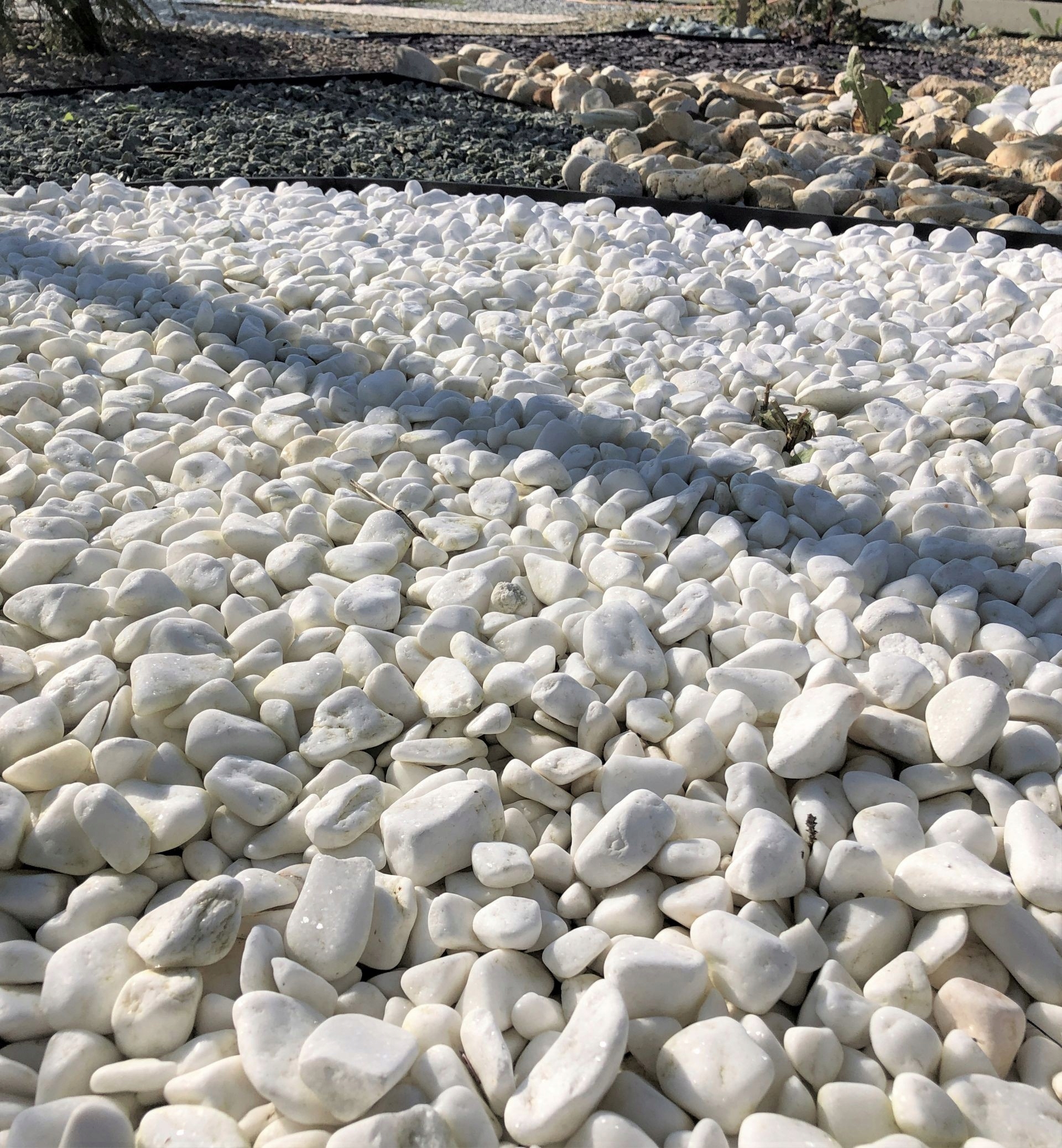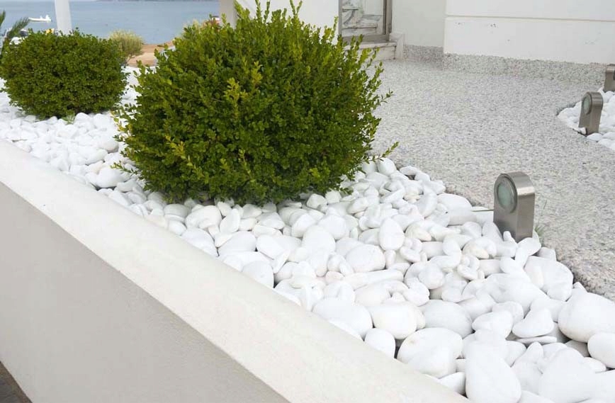 Камінь з покриттям, білосніжний колір додасть саду елегантності. Його можна використовувати як декоративний елемент в альпінаріях, як посипку навколо дерев або будівель. Красиво виглядає в інтер'єрі квартири або офісу. Це абсолютний хіт в садівництві. Камінь родом з Греції. Камінці залишаються білосніжними незалежно від того, сухі вони чи мокрі. Це свідчить про їх оригінальність.