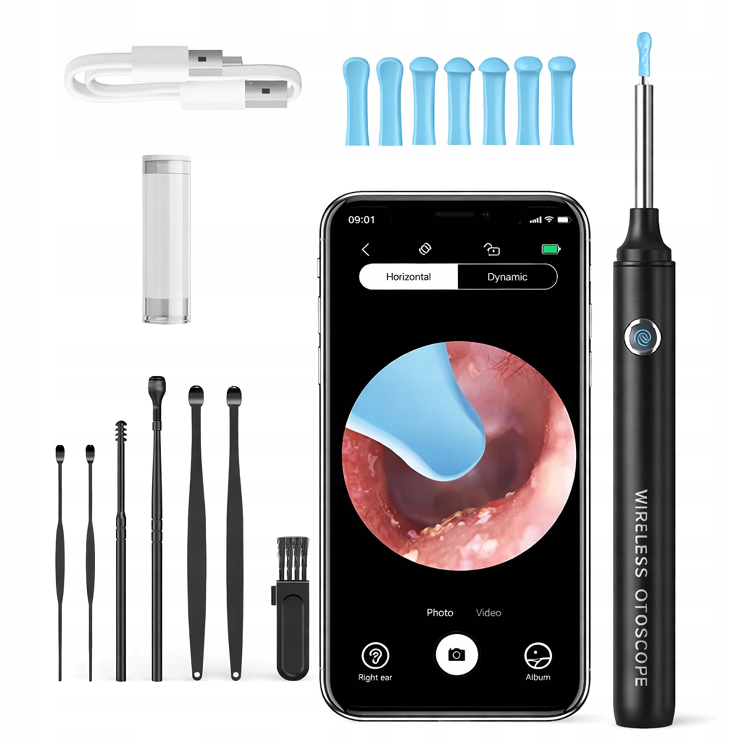 Smart Otoscope — це сучасна ендоскопічна камера для чищення вух, яка підключається до телефону через Wi-Fi і спеціальну програму. Завдяки HD-камері ви можете в реальному часі спостерігати за внутрішньою частиною вуха та безпечно видаляти вушну сірку.