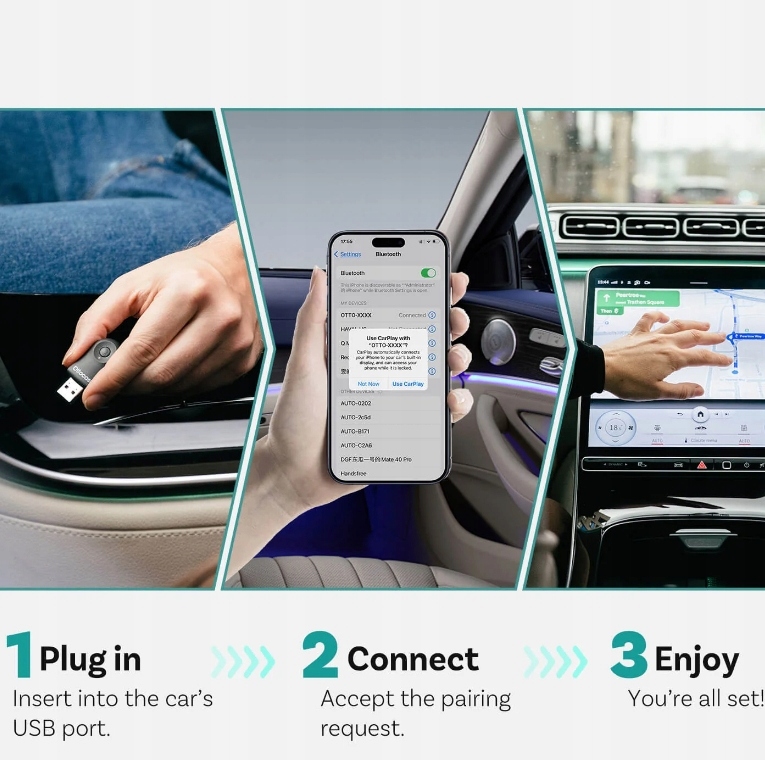 Зробіть це за кілька секунд! Це не вимагає складної установки! Підключіть Mini Ottocast до USB -порту автомобіля і залиште.