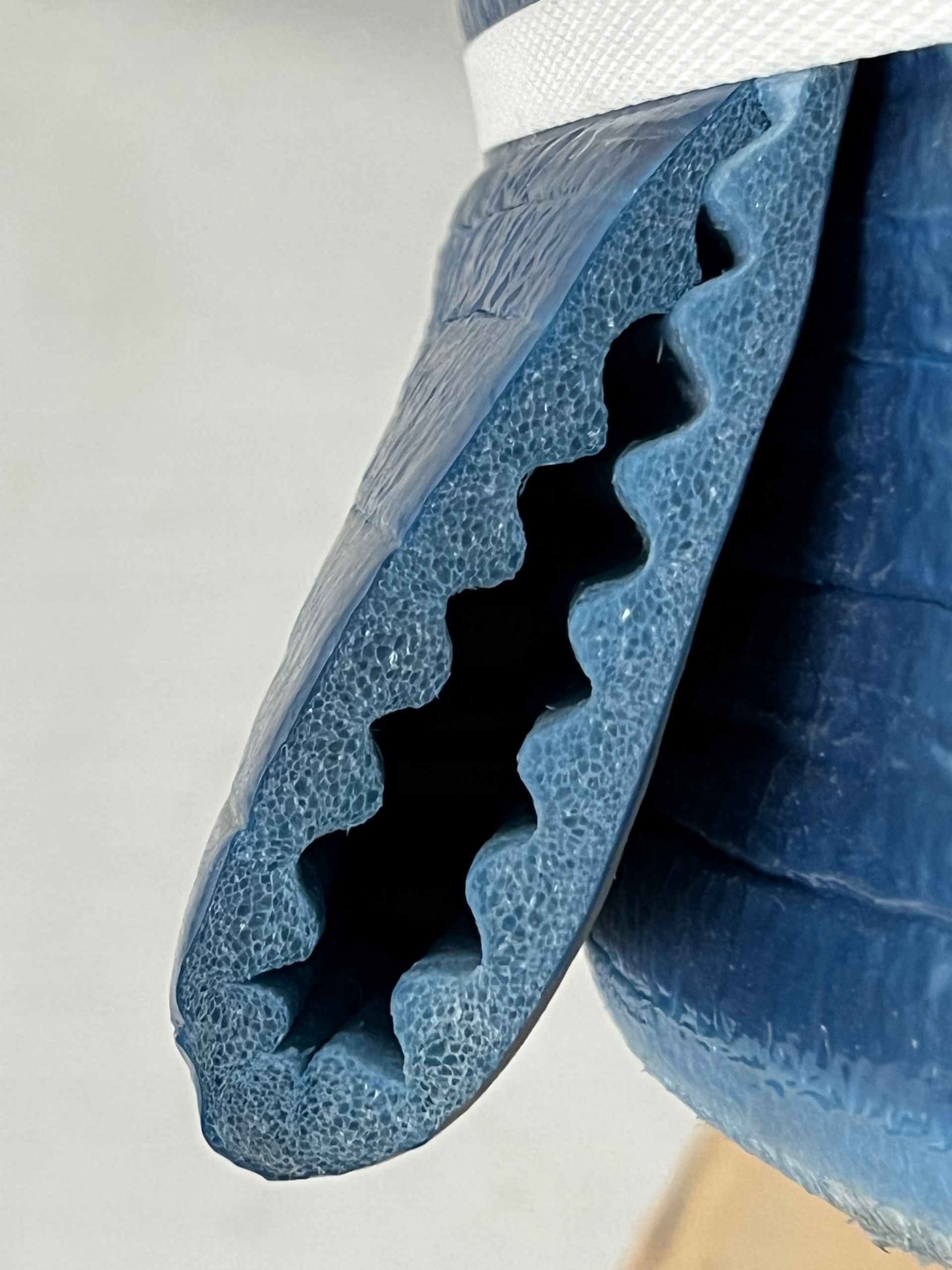Зовнішнє покриття фольги, що забезпечує додатковий захист ізольованих поверхонь. Спеціально сформована хвиляста внутрішня поверхня забезпечує чудову акустичну поглинання пластикових труб.