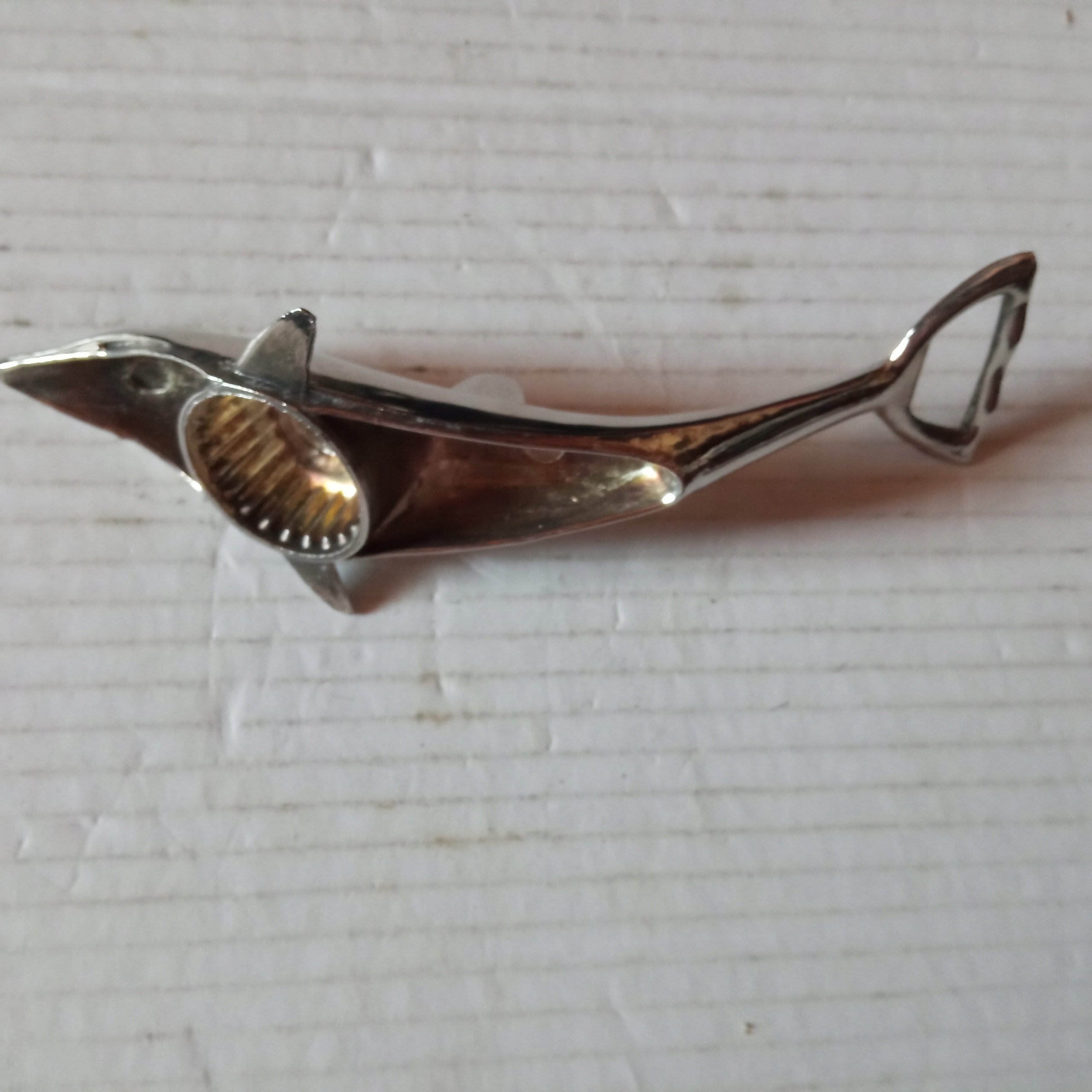 Пропоную з власної колекції відкривачка у формі дельфіна з можливістю закривання пляшки. Довжина відкривачки - 16 см.