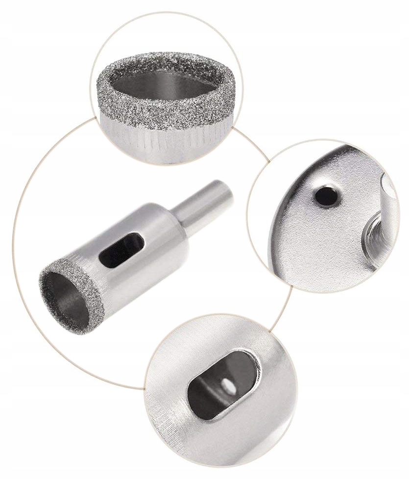 Алмаз у пропонованих кольцевих пилках встановлено гальванічним методом. Це означає, що під час роботи кольцєві пилки необхідно охолоджувати рідиною. Ви можете використовувати звичайну мийку для вікон або губку, змочену у воді. Перевагою даного типу кольцевої пилки є те, що зроблений нею отвір характеризується відсутністю осколків. Кольцєві пилки також працюють всуху, але це скорочує термін їх служби.