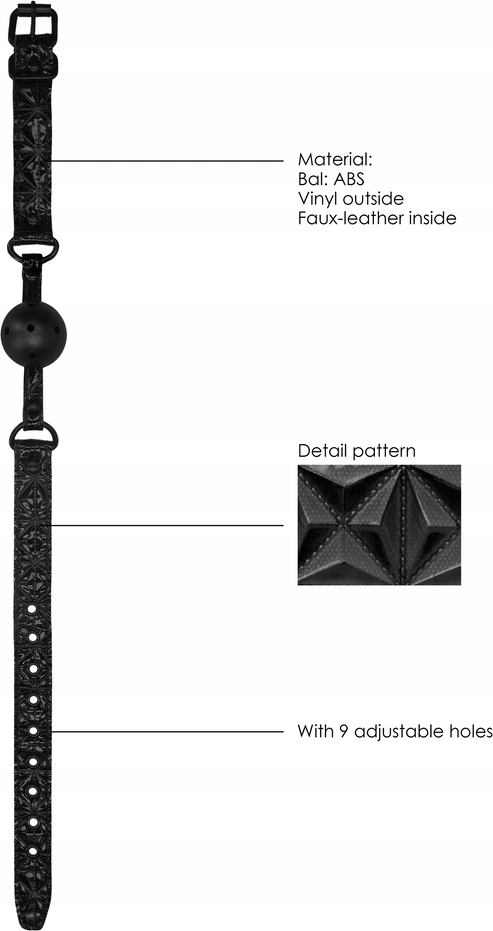 Цей міцний кульковий кляп без фталатів має металеві ущільнювальні кільця та регульовану пряжку з 9 отворами для легкого регулювання.