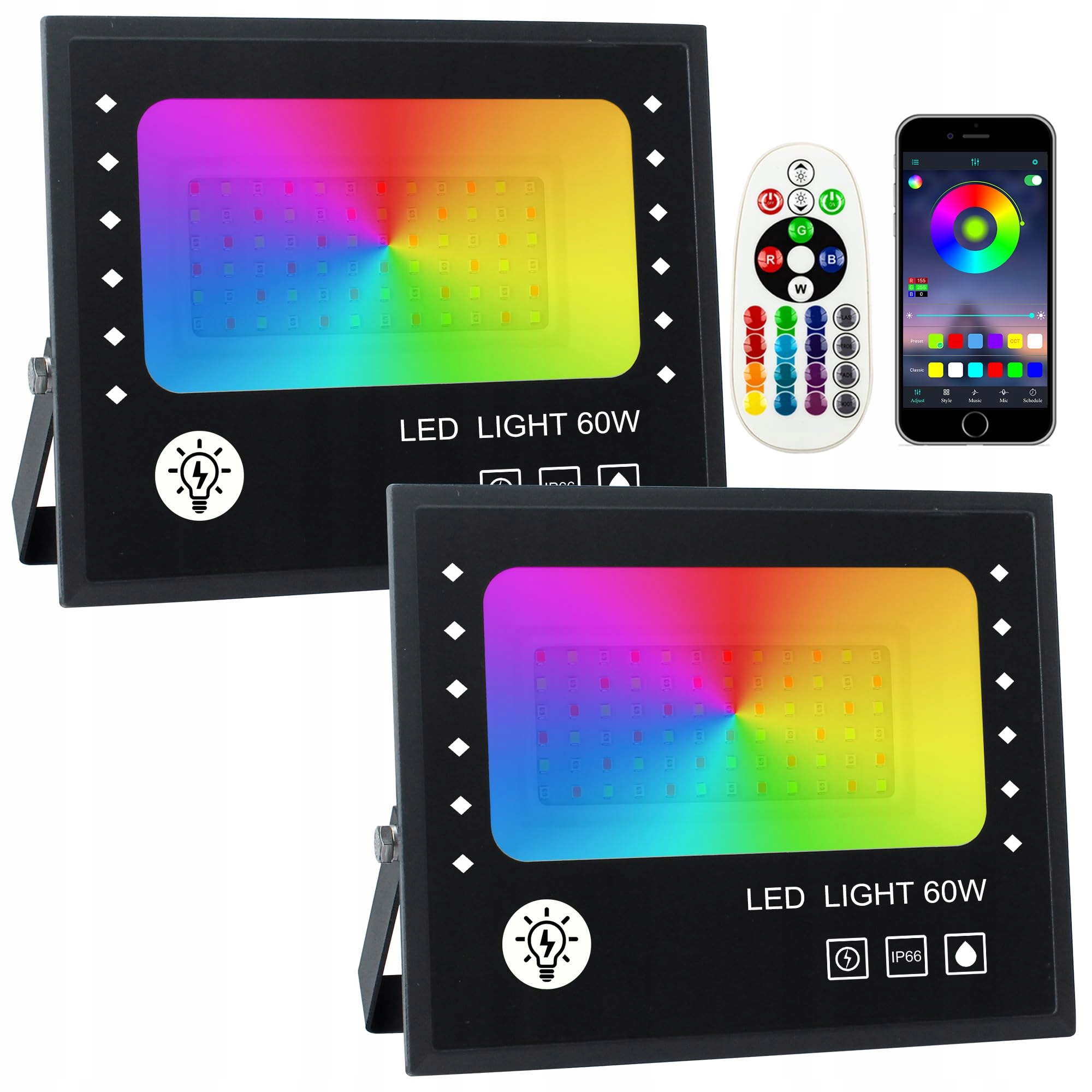 Відкрийте можливості багатофункціональної фари RGB з потужністю 60 Вт, яка оснащена 72 надзвичайно яскравими та енергозбереженими світлодіодами з вражаючим життям до 60 000 годин. Завдяки можливості коригувати 16 мільйонів кольорів, одного пристрою достатньо, щоб адаптувати освітлення до кожної ситуації, усуваючи необхідність купувати багато різних вогнів.