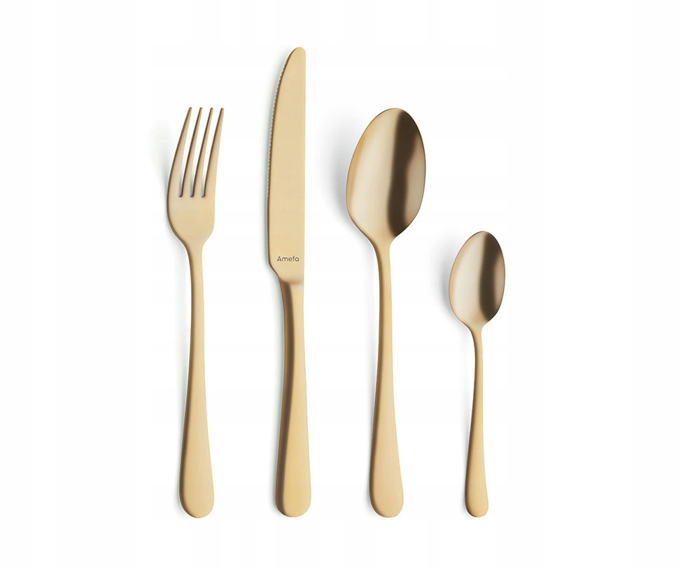Ця унікальна серія столових приборів із золотим покриттям створює старовинний ефект на нержавіючу сталь.