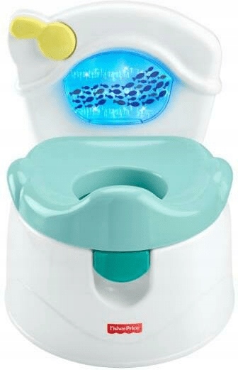 Гощик-рибка Fisher-Price допоможе вам і вашій дитині, коли настане час розпрощатися з підгузками. Кожне вдале використання горщика винагороджується веселим світлом і звуками, коли дитина натискає кнопку змиву. Горщик легко миється і має знімну навчальну кришку, яка полегшить вашій дитині користування справжнім туалетом. Розмір упаковки: 36,5 х 32 х 23 см Вік: 1+