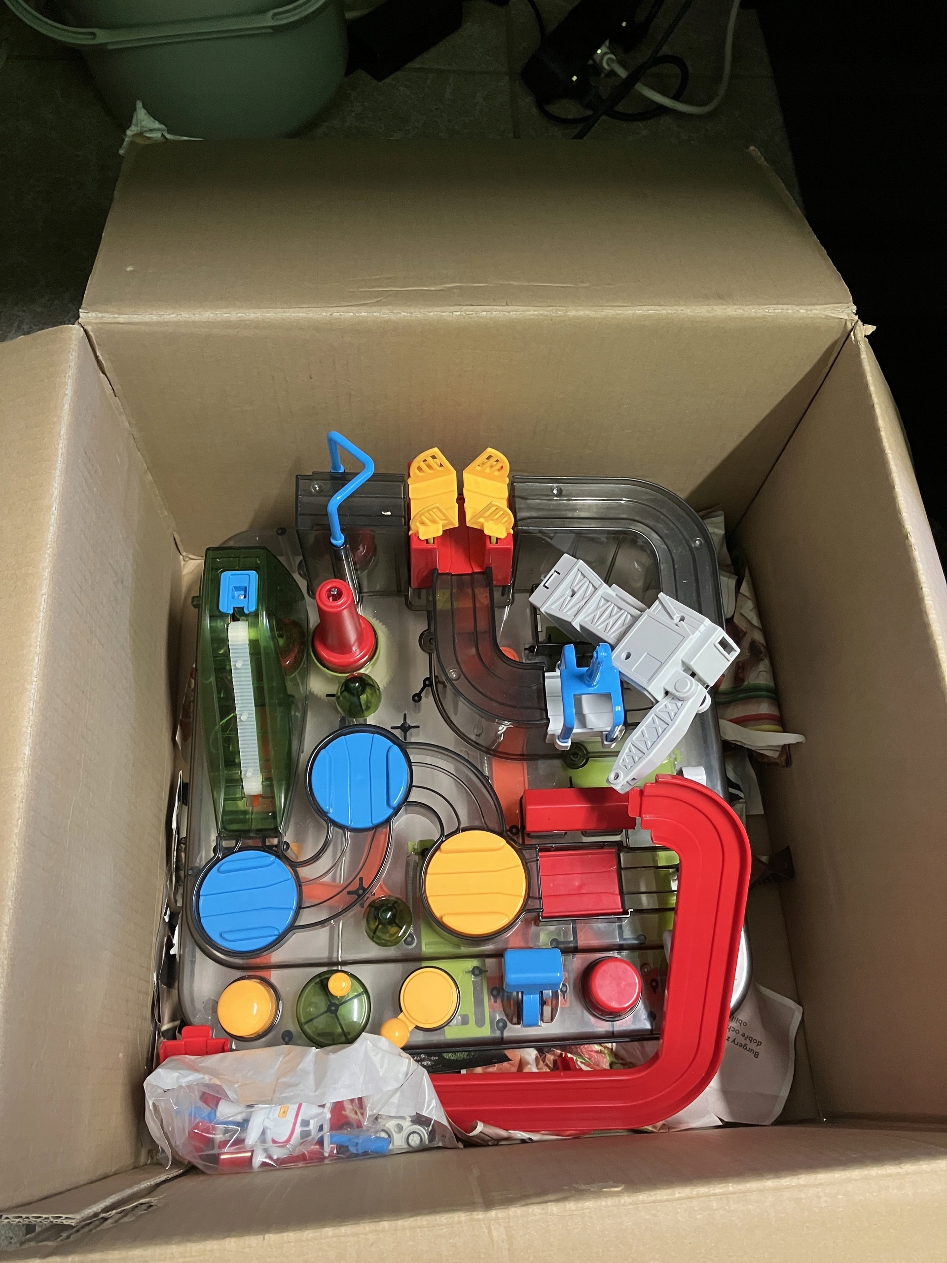 Іграшка повністю захоплює дітей. Усі механізми та перешкоди на маршруті управляються вручну. У розпорядженні юного дослідника є 6 різних типів кнопок і шестерень.