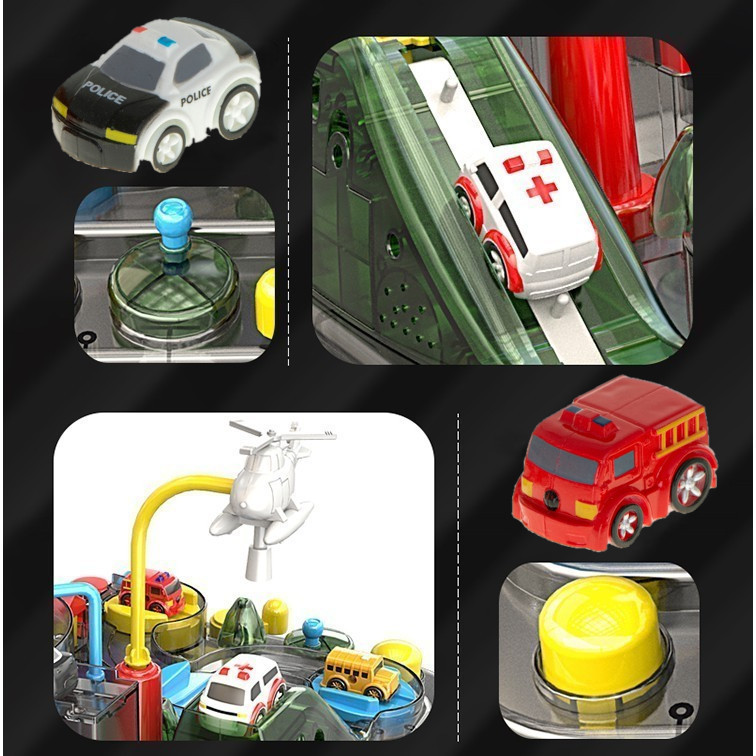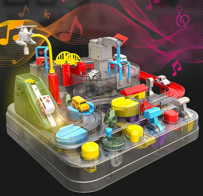 Це не звичайна автомобільна траса. Пропонована гірка має гравітаційні механізми, а також ручні механізми та перешкоди. Дитина повинна все робити сама, тобто керувати невеликою машинкою, долати перешкоди та впоратися з усіма труднощами на маршруті (наприклад, рухомий ліфт, кран, міст).