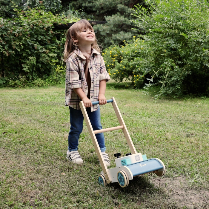 Красива дерев'яна газонокосарка від Adam Toys - це іграшка для особливих завдань. Ще одна добре продумана пропозиція, яка має виконувати багато завдань і, перш за все, має дарувати багато радості.