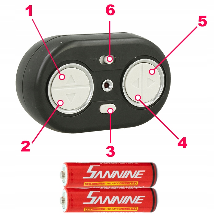- пульт дистанційного керування, джерело живлення 2xAA (батарейки в комплекті)