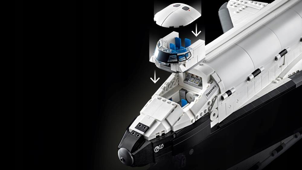 З точки зору астронавта багатофункціональна модель вшановує надзвичайні досягнення космічного човника Discovery. Відкрийте вантажний відсік, щоб вивести телескоп Hubble на орбіту для дослідження космосу. Переставте елерони, висуньте шасі під час входу в атмосферу та активуйте механічну руку. У кабіні, що відкривається, ви знайдете кабіну командира та екіпажу з місцем для п’яти астронавтів. Телескоп має рухомі сонячні панелі та апертурну заслінку. Кілька підставок допоможуть вам розмістити човник і телескоп разом або окремо.