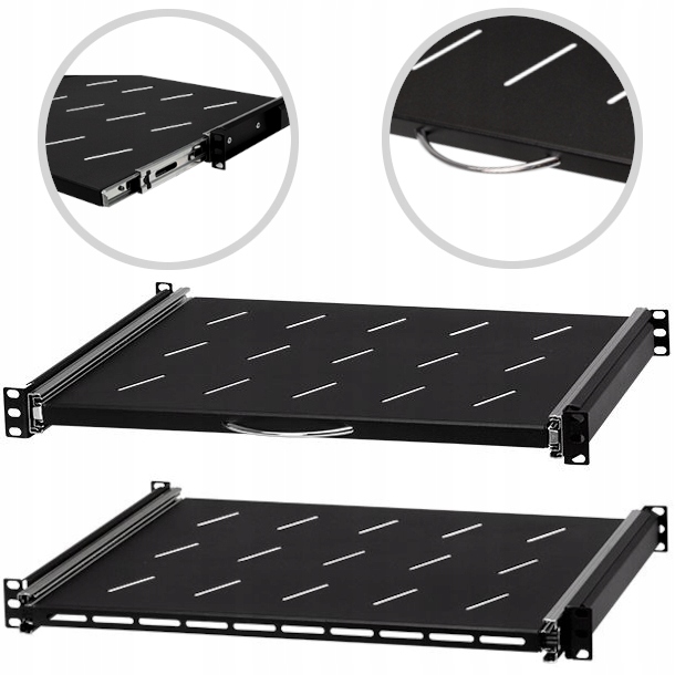 Висувна полиця, пристосована для встановлення пристроїв без монтажних кронштейнів RACK. Призначений для встановлення в 19-дюймових ІТ-шафах.