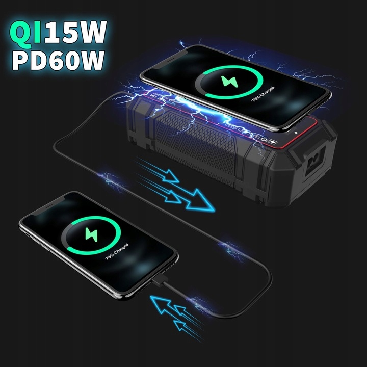 Стартер для стрибків (бустер) ⭐ Сильний ліхтарик ⭐ Powerbank з можливістю бездротової зарядки та PD60W