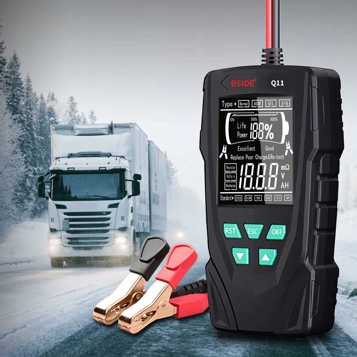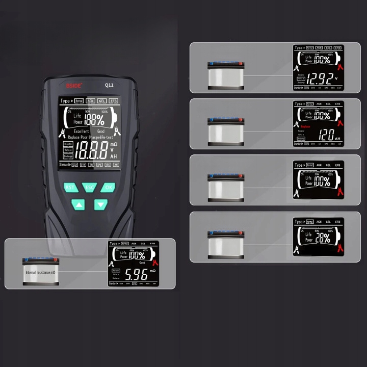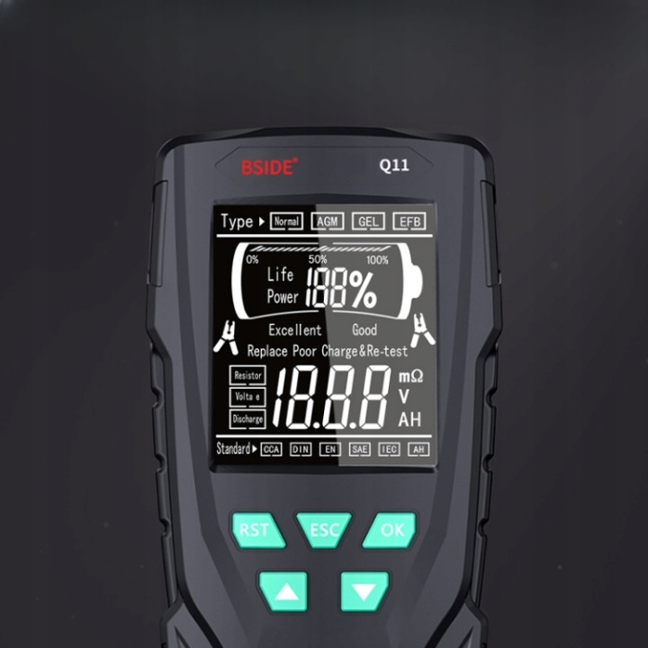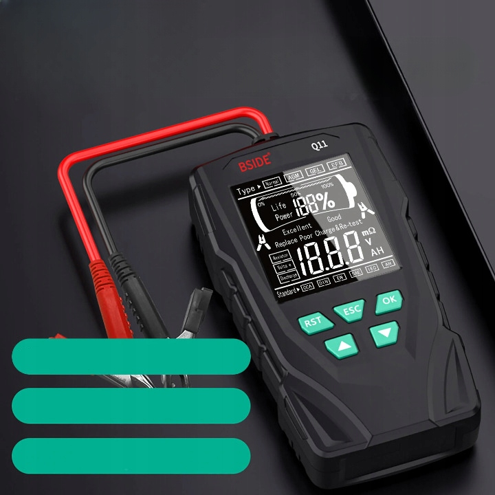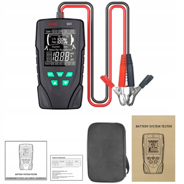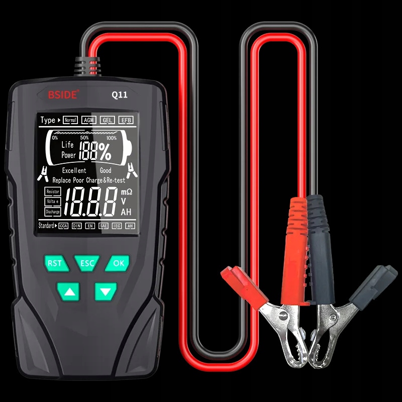 Пристрій Bside Q11 ідеально підходить для тестування всіх типів акумуляторів для легкових автомобілів, мотоциклів, електромобілів, навантажувачів тощо.