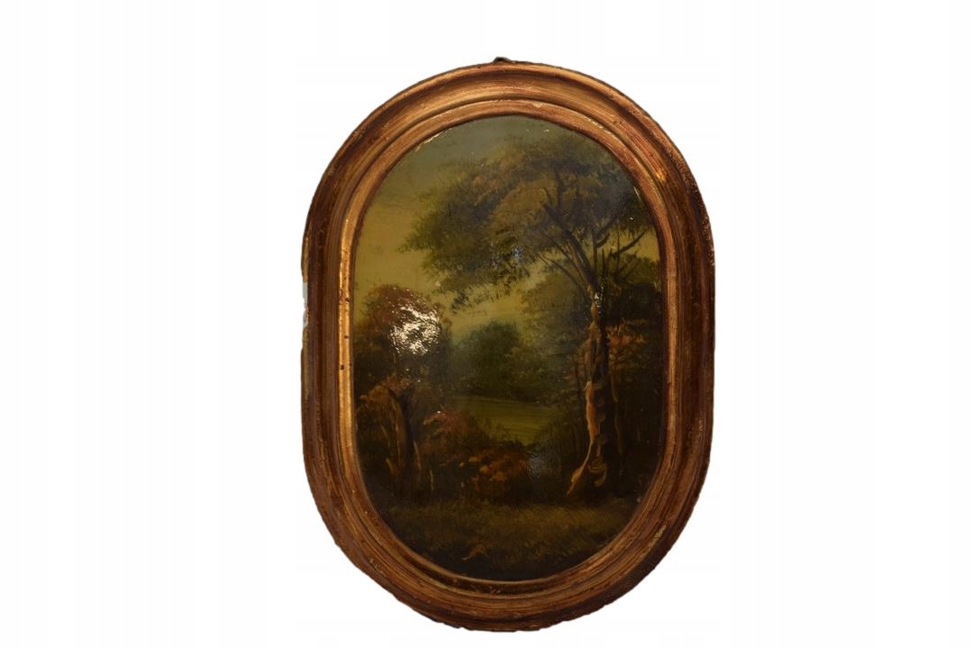 Овальна картина олії - Лісовий пейзаж - Малюнок природи річки дерева № 49