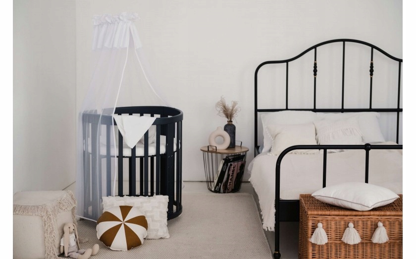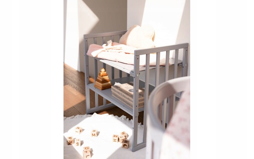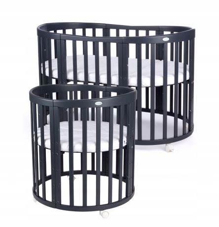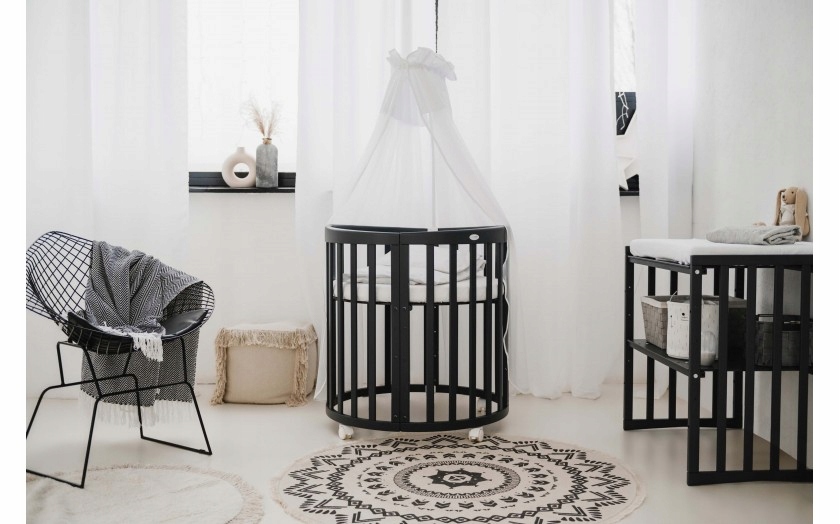 Ідеальний простір для сну з дня народження, відразу після народження дитини, ідеально підійде перший варіант ліжечка овальної форми, який забезпечує спокійний сон і в той же час ідеально доповнює будь-який сучасний інтер'єр. У нижній частині ліжечка є практичні колеса, які дозволять вам легко переміщатися між вітальнею та спальнею, не прокидаючи дитину від сну. Завдяки елементам, що входять до комплекту, поруч з овальним ліжком можна розмістити пеленальний столик, який ідеально підійде для щоденного догляду. Пеленальний столик оснащений додатковою полицею, де можна зберігати необхідні аксесуари, такі як підгузки або серветки.
