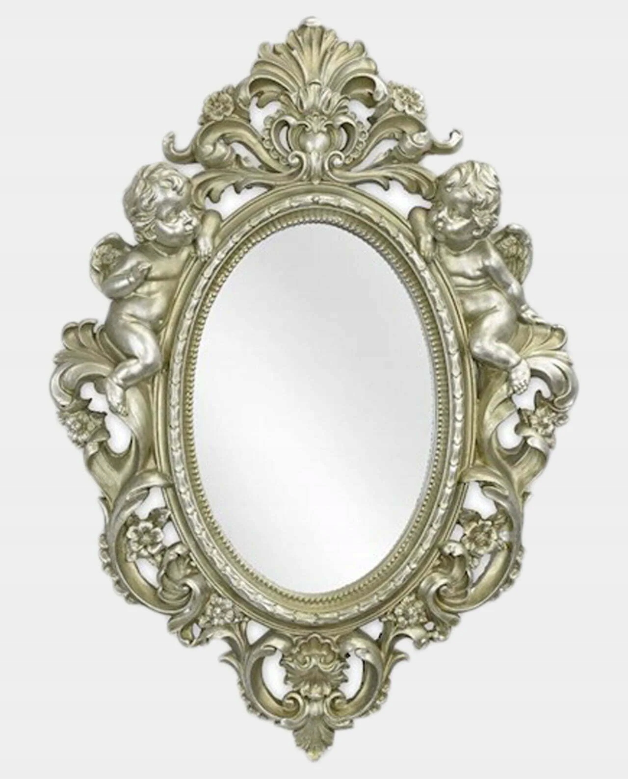 Овальне дзеркало сріблястого херувиби листя