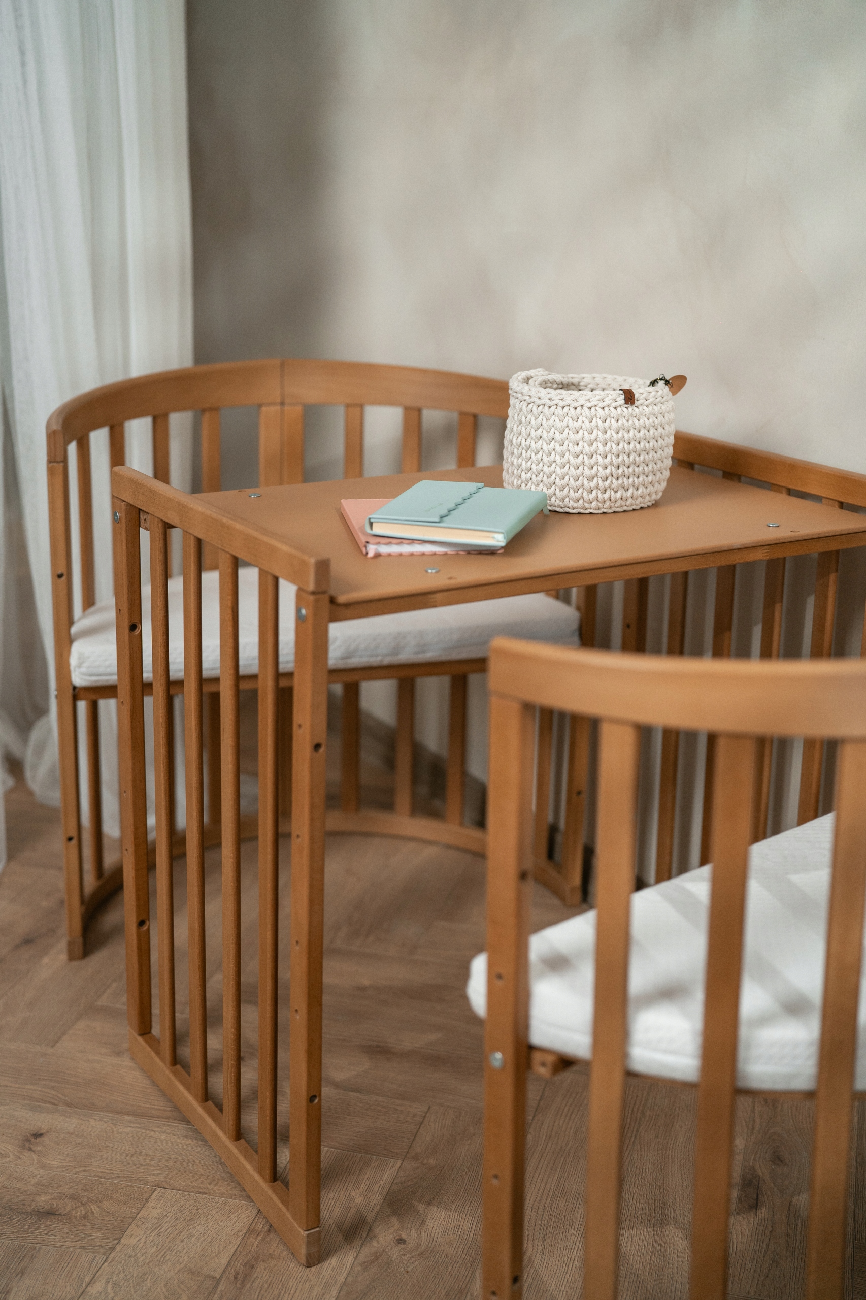 Предмет меблів також можна використовувати як місце для навчання чи гри. Можна створити зручний комплект зі столу і двох стільців. Висота сидінь і стільниці регулюється, що дозволяє створити ідеальний дитячий куточок. Однак якщо ваша дитина все ж хоче спати в своєму улюбленому ліжечку