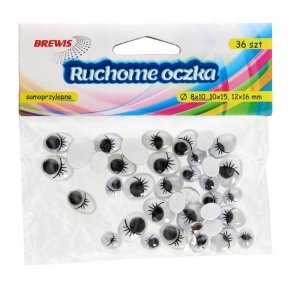 САМОКЛЕЮЧІ ОВАЛЬНІ РУХОВІ ОЧІ З ВІЯМИ RO18 МІКС РОЗМІРІВ 36 ШТ BREWIS
