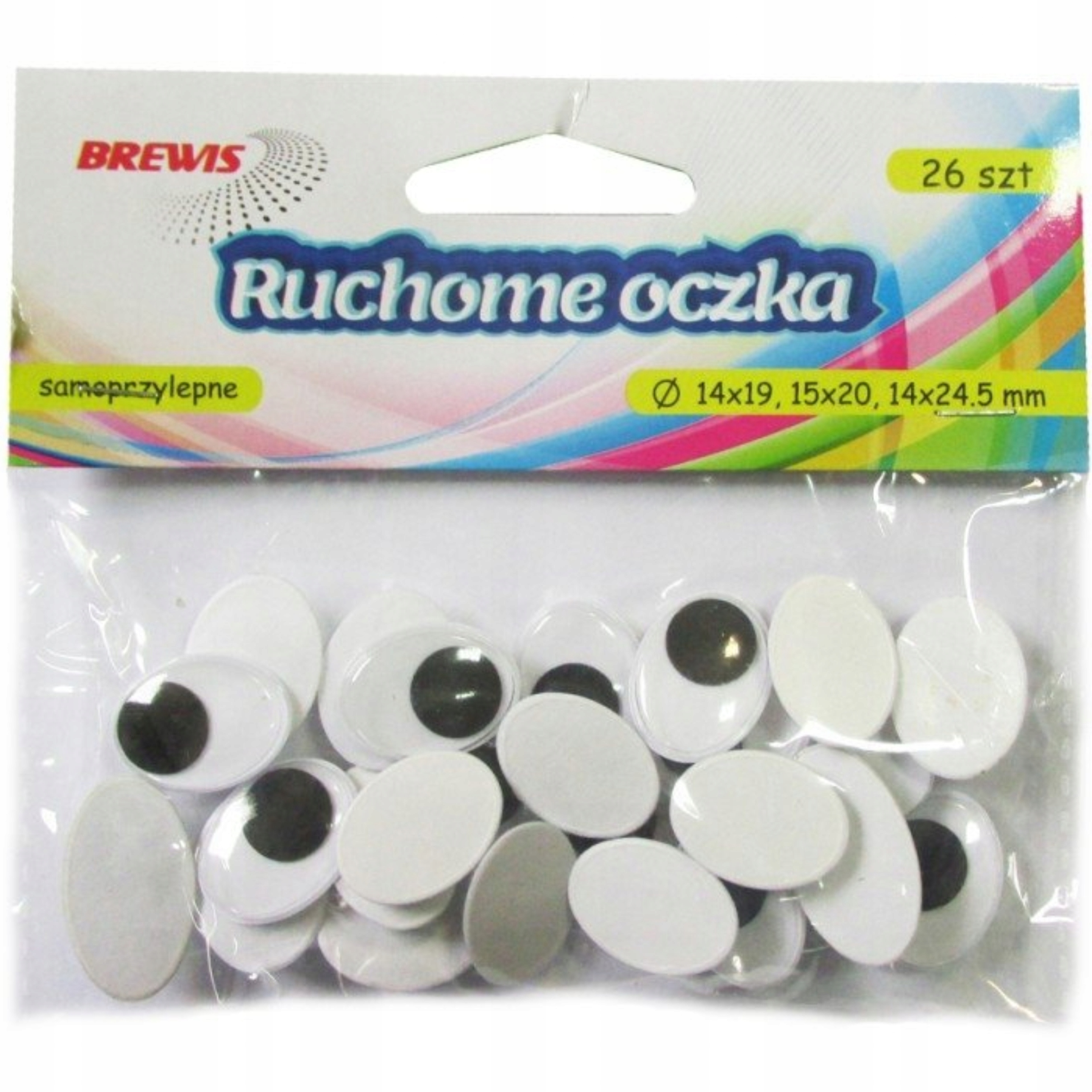 САМОКЛЕЮЧІ ОВАЛЬНІ РУХОВІ ОЧІ RO23 МІКС РОЗМІРІВ 26 ШТ. BREWIS