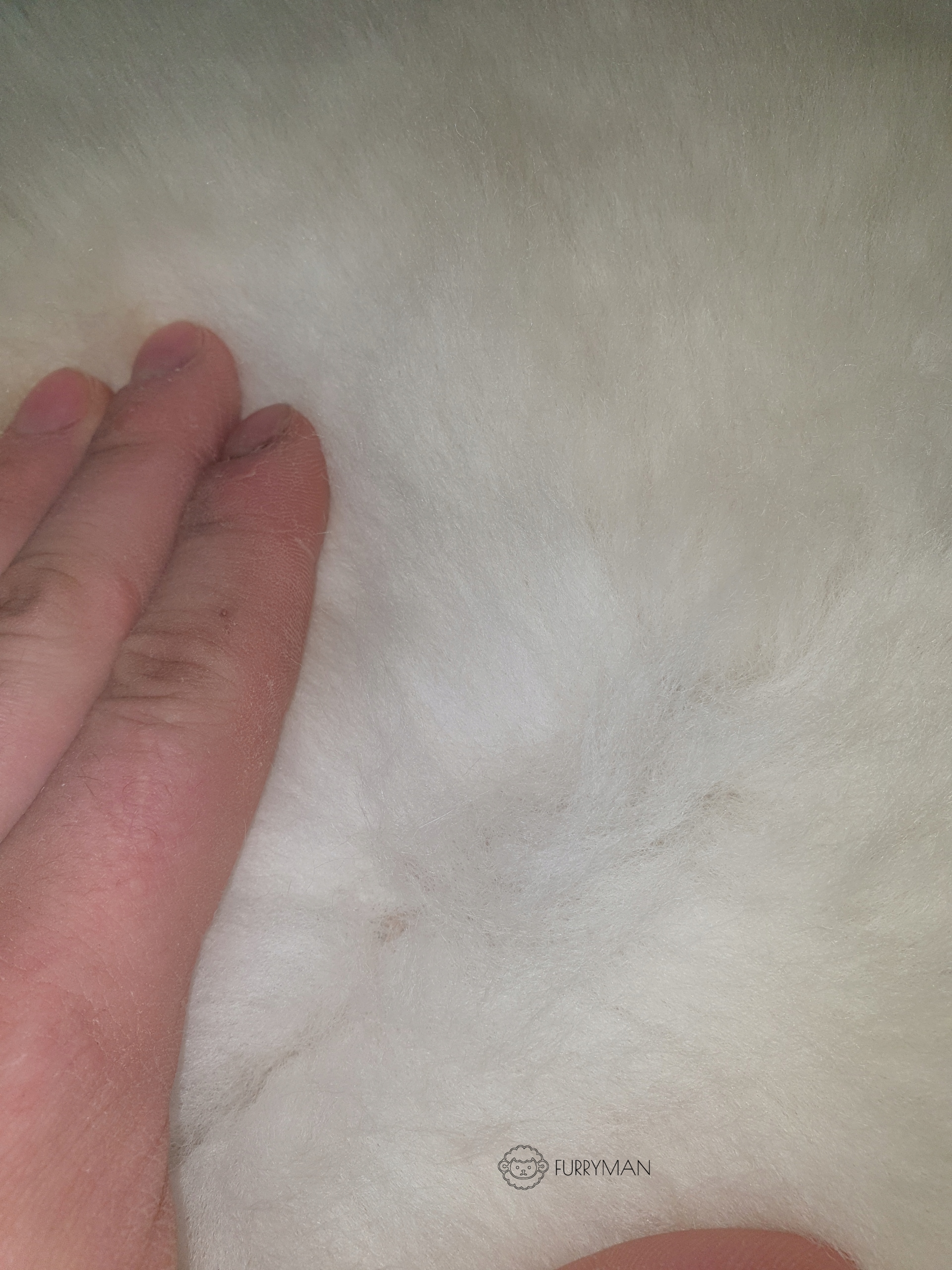 Біла овчина характеризується короткою, м'якою і густе волосся довжиною близько 4 см. Шерсть зазвичай пряма та рівномірна за товщиною, що полегшує догляд за овчиною.