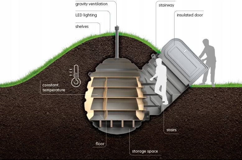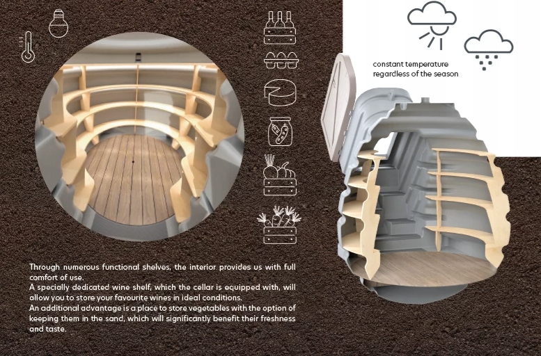 Садовий льох Ovo, холодильна камера, комора, консерви та зберігання вина