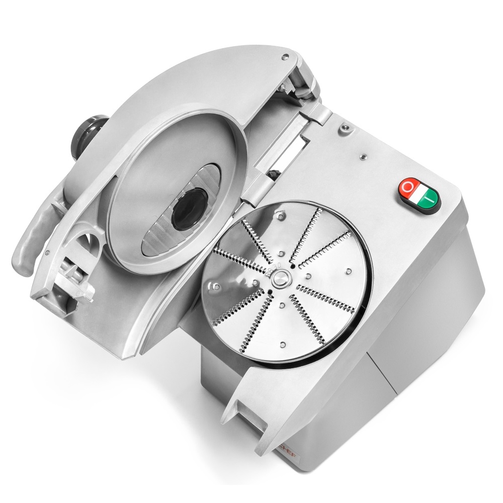 Потужний асинхронний двигун адаптується до навантаження без зміни швидкості. робочий диск. Конструкція пристрою дозволяє подрібнювати, різати і шинкувати продукти різного розміру. Залежно від використовуваних дисків можлива обробка як твердих, так і м’яких, делікатних продуктів, а спеціально підібраний асортимент додаткових дисків дозволяє нарізати скибочками, шматками, брусками та кубиками.