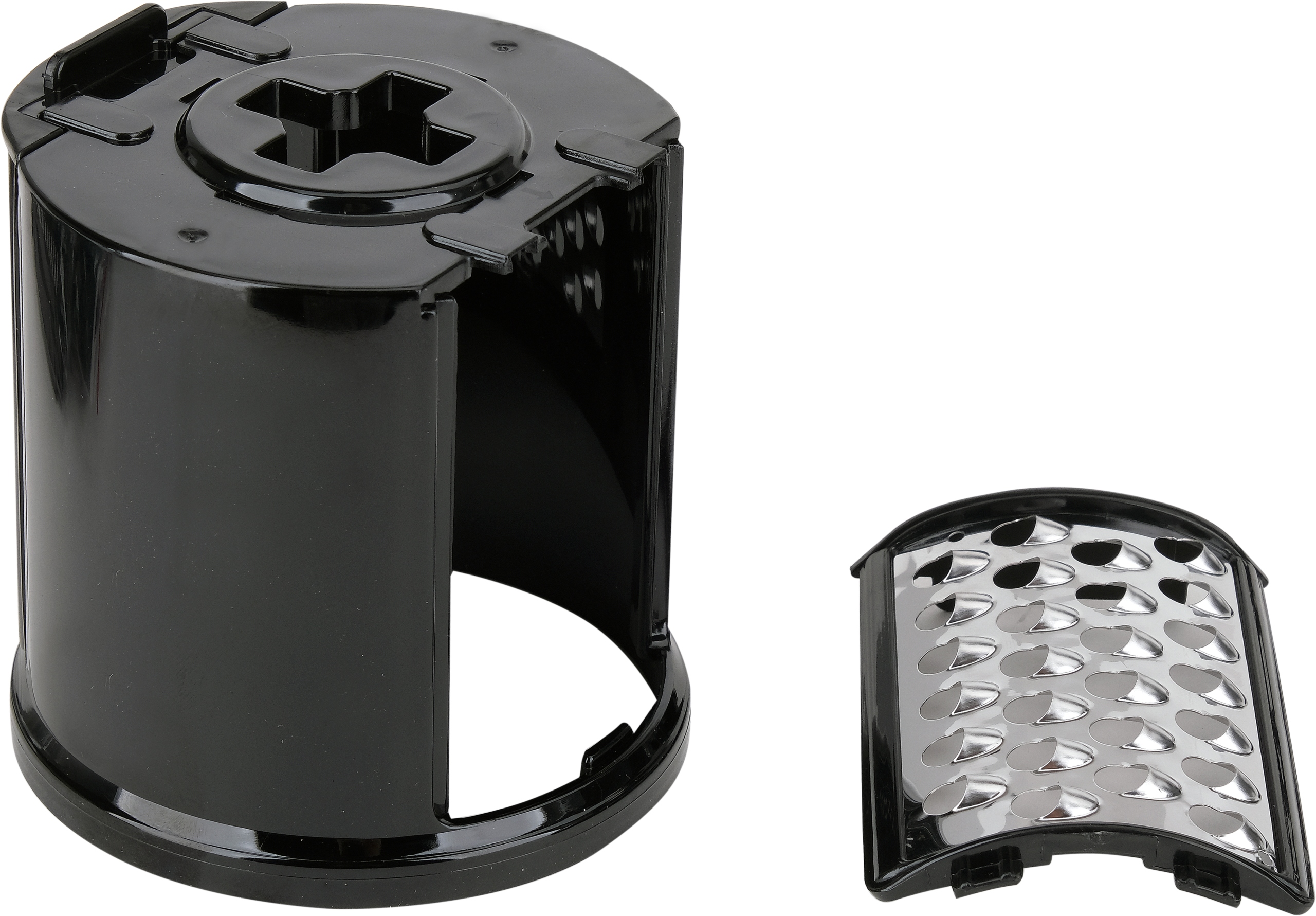- міцний барабан із 5 змінними лезами з нержавіючої сталі точно нарізає овочі скибочками або стружкою різного розміру