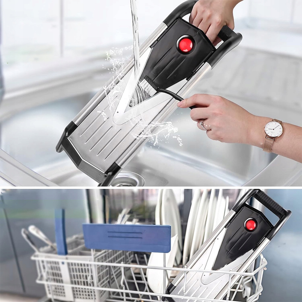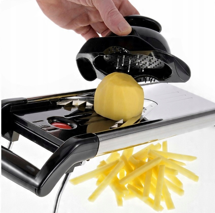 🥔З аксесуарами для захисту рук і нековзкими ніжками. З контейнером для зберігання лез, який зберігає їх у безпеці.