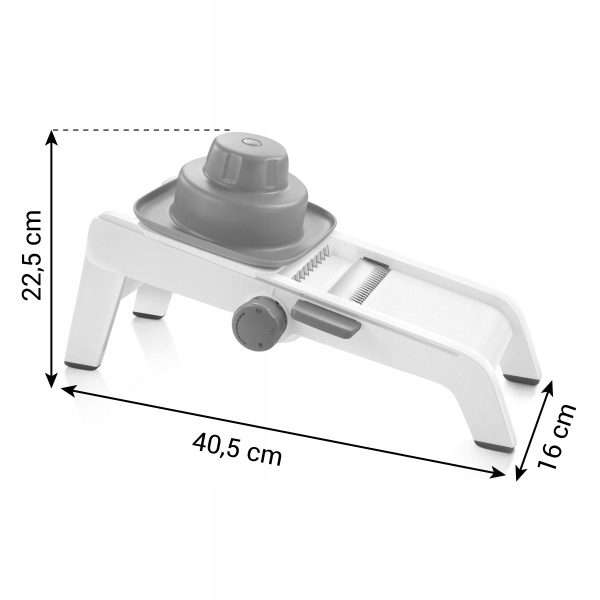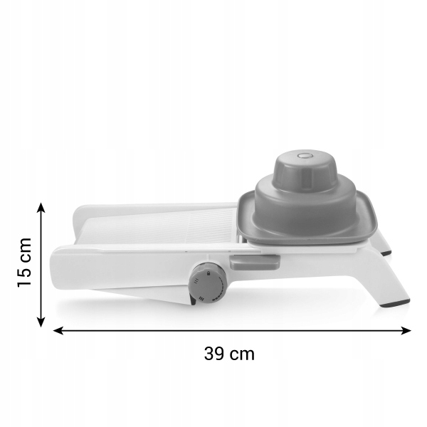 Високоякісний слайсер для легкого та швидкого приготування маленької та великої картоплі фрі, а також гладких і хвилястих скибочок овочів, фруктів тощо. Поворотна ручка, двостороннє лезо для нарізки та розсувний контейнер для овочів із зменшенням, безпечною ручкою та замком . Стійка рама зі складною опорою та нековзкою поверхнею. Легке зберігання. Слайсер виготовлений з високоякісної нержавіючої сталі та міцного пластику.